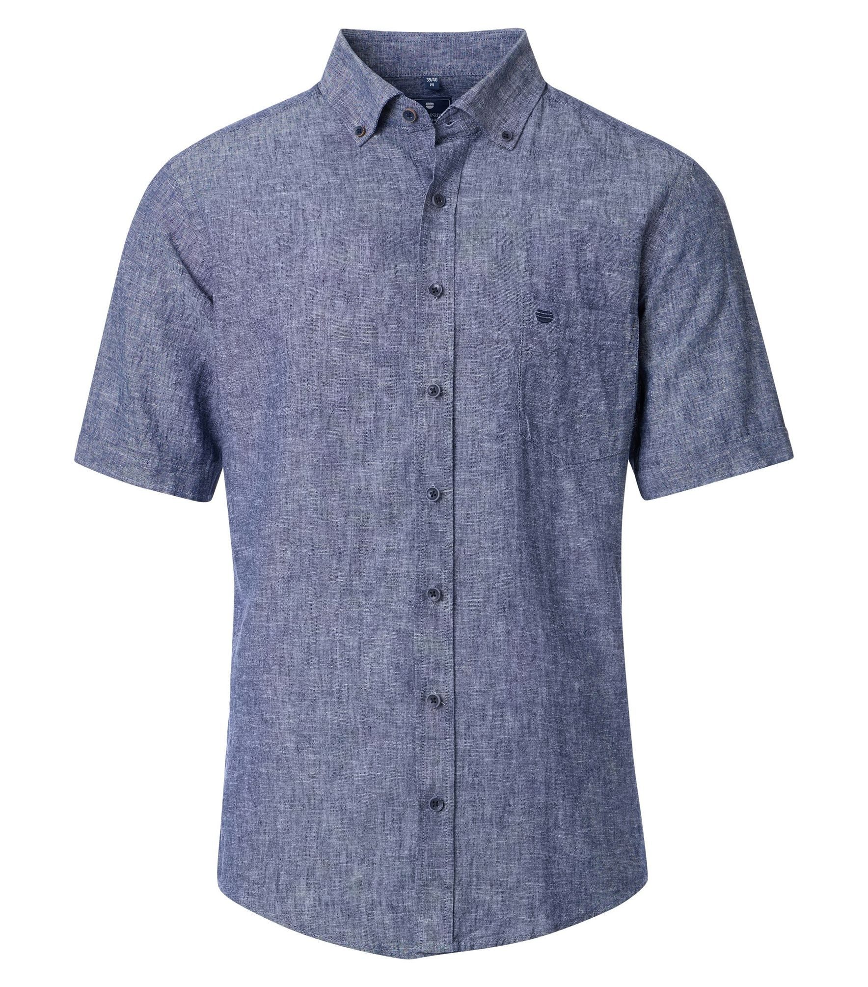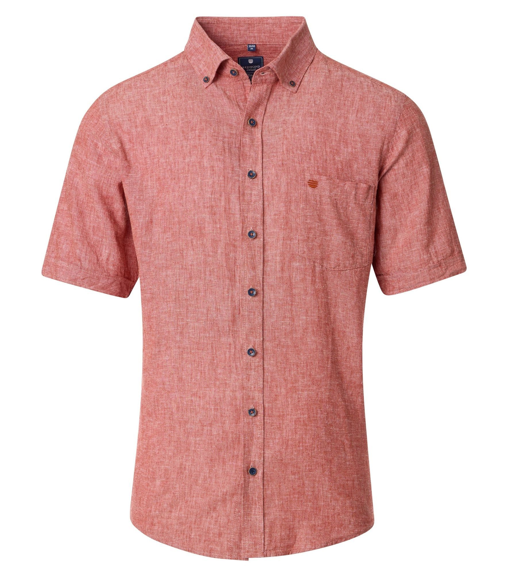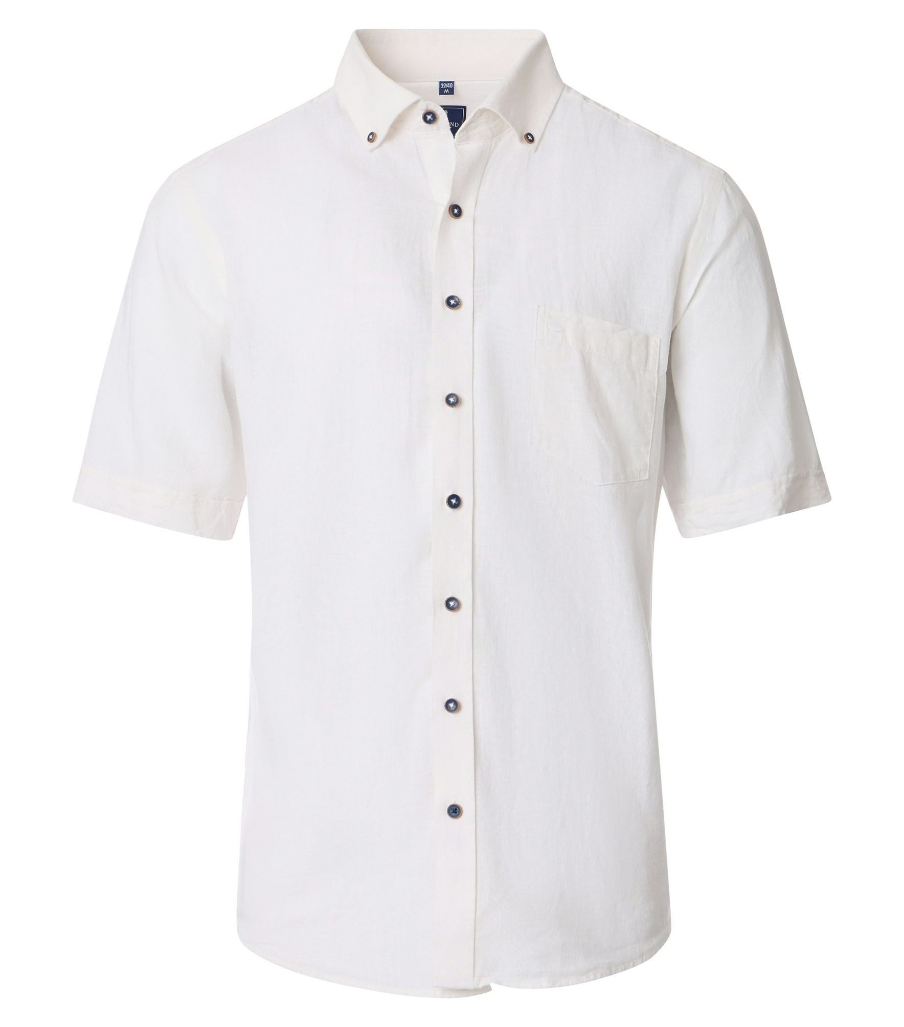 Redmond Herren Leinenhemd Casual Fit Button Down Kragen Kurzarm Einfarbig Olive