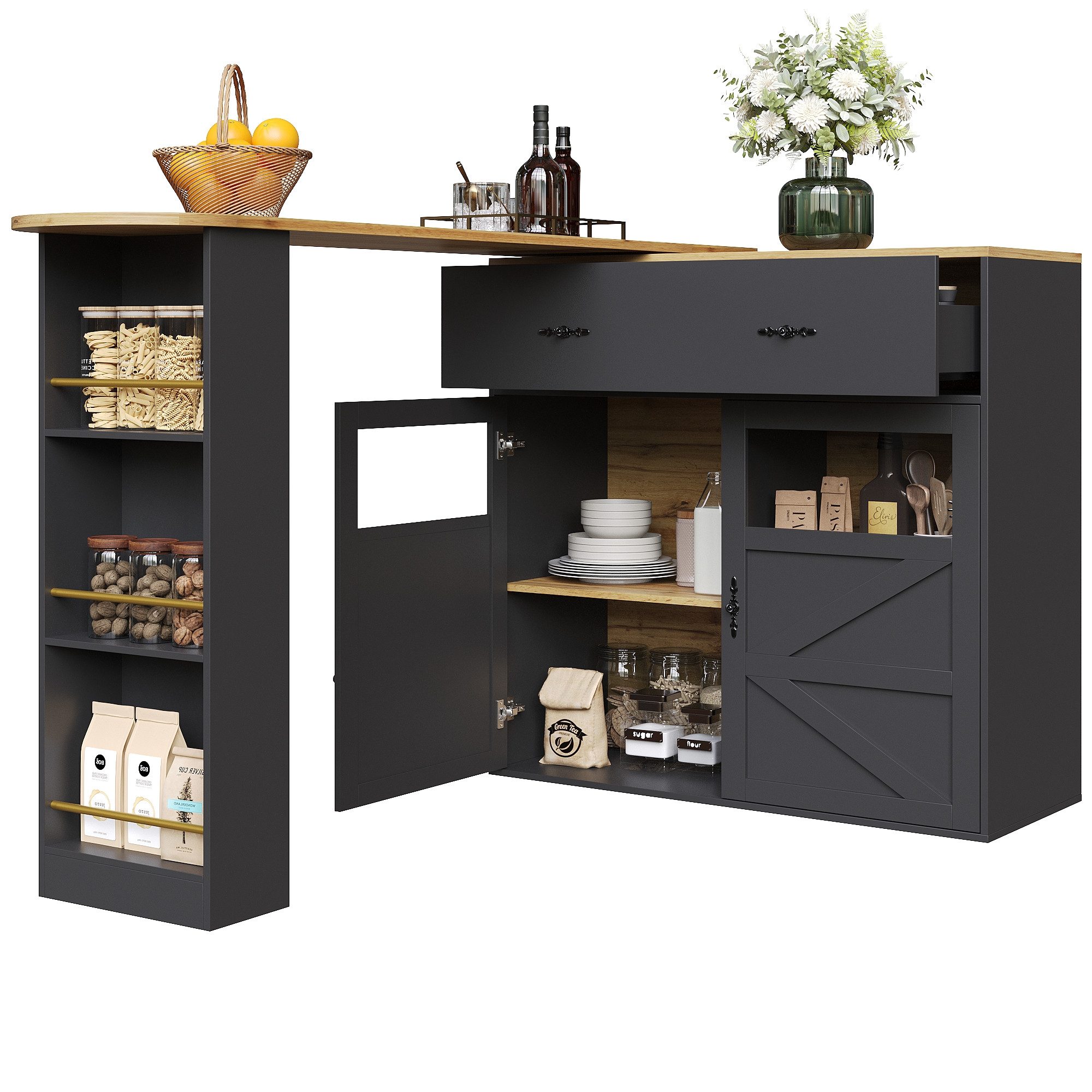 Dieser Bartisch ist nicht nur funktional, sondern bietet auch intelligente Stauraumlösungen. Mit einer großen Schublade, einem 3-stufigen Seitenregal und höhenverstellbaren Brettern können Sie Gläser, Geschirr, Dekoration oder Bürobedarf ordentlich verstauen. Diese durchdachten Aufbewahrungsmöglichkeiten schaffen Ordnung und sorgen für einen aufgeräumten Look in Ihrem Raum.