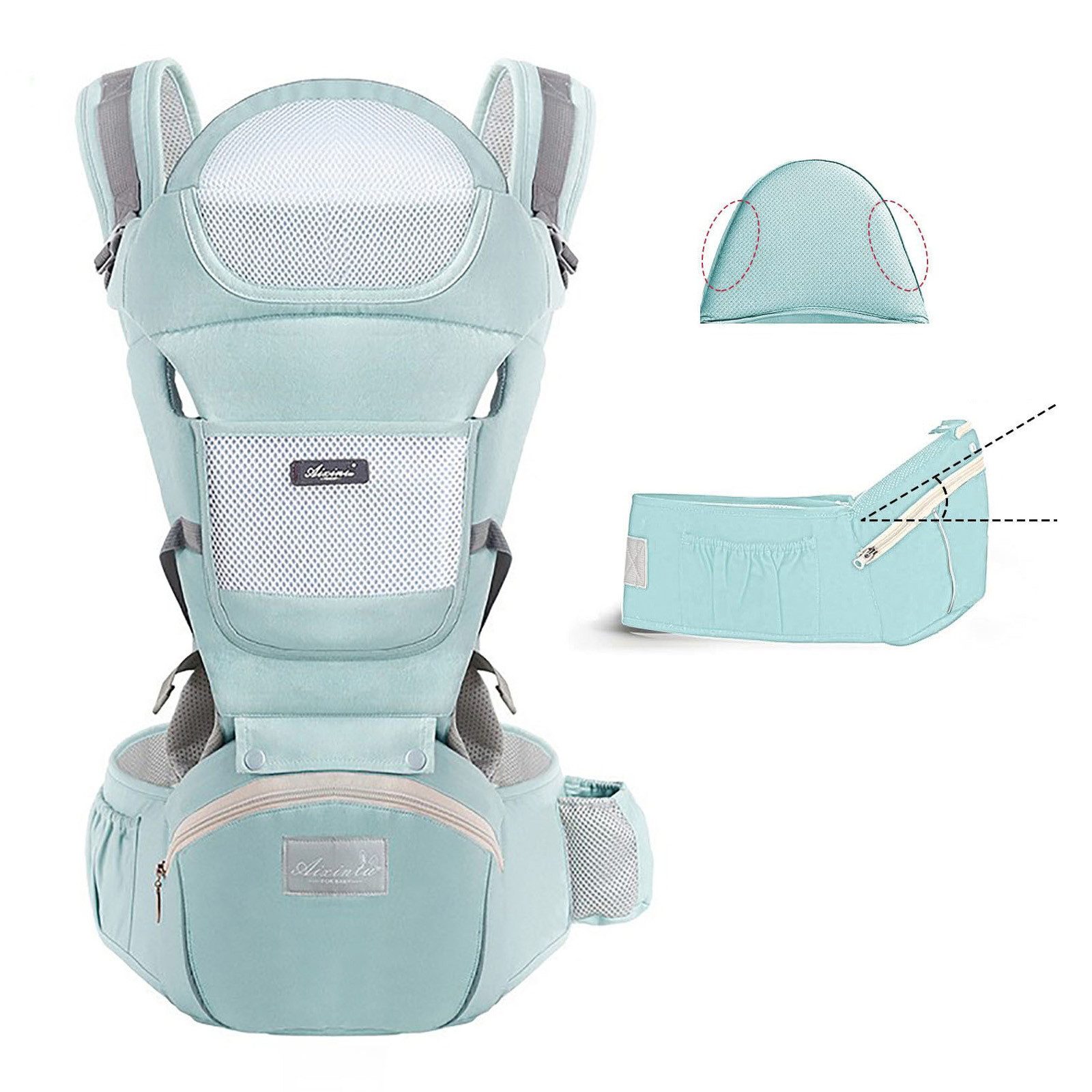 Gefertigt aus hochwertiger Baumwolle und atmungsaktivem 3D-Mesh sorgt die Babytrage für sanfte Pflege der empfindlichen Haut. Das Material ist maschinenwaschbar, während der verstellbare Hüftsitz sowohl im Sommer kühl als auch im Winter warm hält. Die wind- und sonnensichere Abdeckung schützt den Kopf des Babys sicher. Praktische Taschen bieten Platz für Flaschen, Handy, Schlüssel oder Taschentücher.
