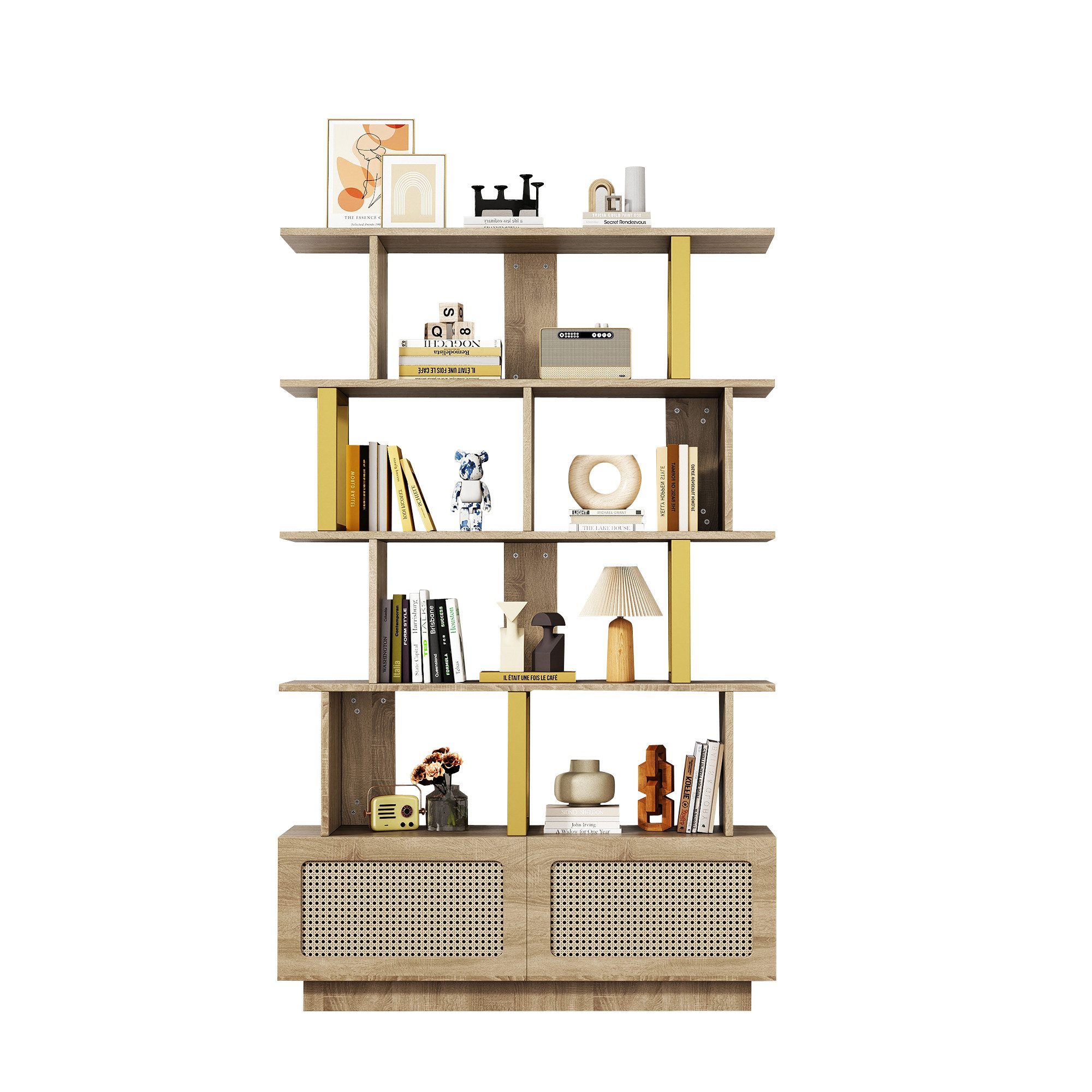 Das REDOM Bücherregal vereint modernes Design mit praktischer Funktionalität. Die natürliche Holzoptik und die eleganten Rattantüren schaffen ein warmes und stilvolles Ambiente in Ihrem Zuhause. Mit leisen Scharnieren ausgestattet, schließen die Türen geräuschlos und sanft. Die offenen Regalböden bieten Platz für Bücher, Dekoartikel und mehr, während der Kippschutzmechanismus für zusätzliche Sicherheit sorgt. Das stabile Regal aus Holz und Metall ist äußerst langlebig und bietet ausreichend Stauraum bei kompakter Größe, perfekt für Wohnzimmer, Arbeitszimmer oder Schlafzimmer.