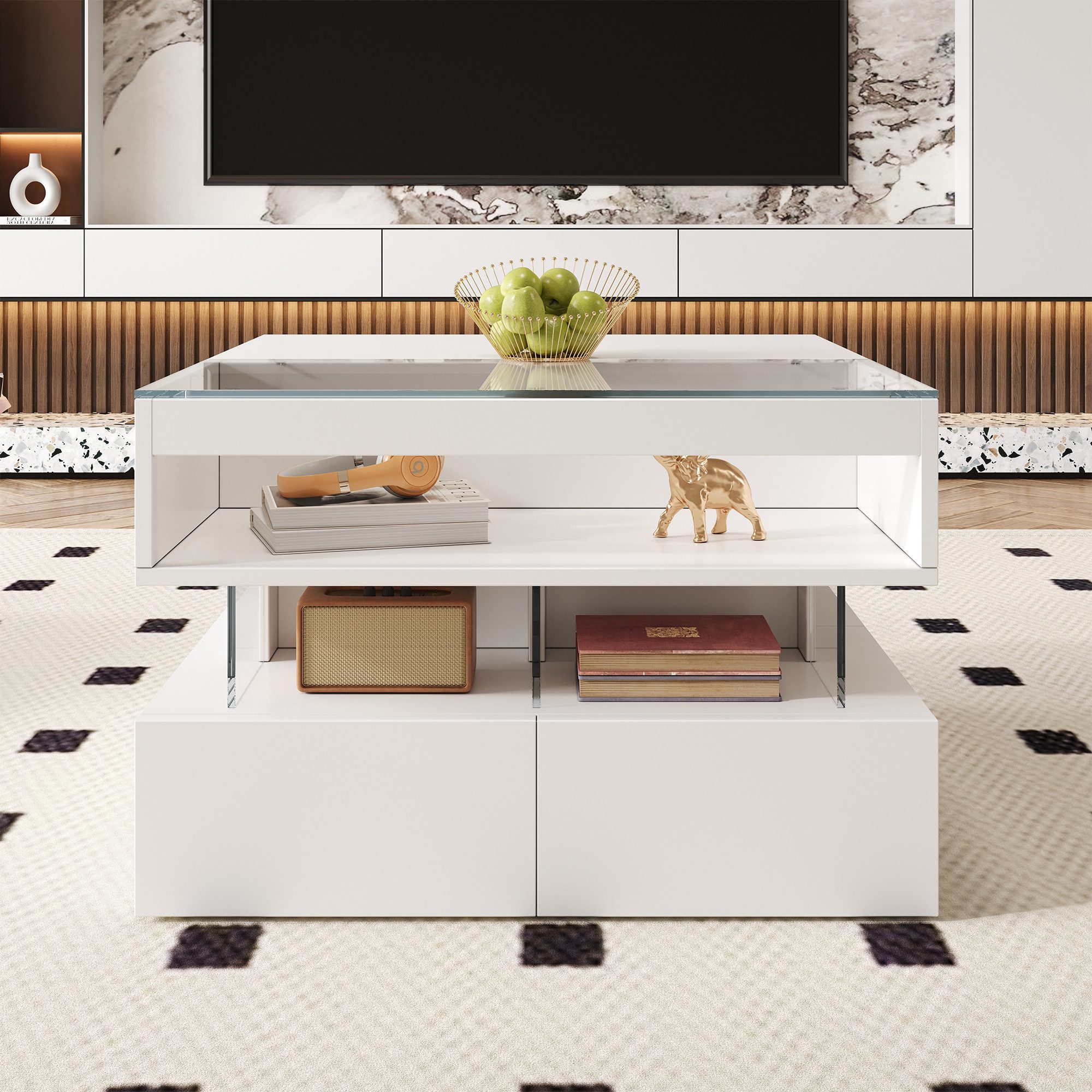 Der Couchtisch vereint modernes Design mit vielseitiger Funktionalität. Die Lift-Up-Tischplatte ermöglicht flexibles Arbeiten oder Essen, während der sanfte Dämpfungsmechanismus für leises und sicheres Heben sorgt. Die elegante Glasplatte mit Acrylträger reflektiert das Licht und ergänzt das integrierte 16-farbige LED-System für stimmungsvolle Beleuchtung. Mehrere Fächer und Schubladen bieten praktische Aufbewahrungslösungen, sodass der Tisch sowohl stilvoll als auch funktional in jedem Wohnraum überzeugt.