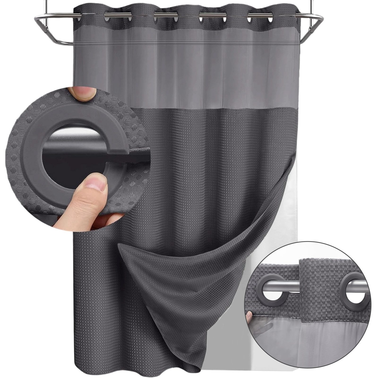 Die strukturierte Waffeloptik und das elegante Design verleihen dem Badezimmer eine edle Atmosphäre, wie man sie aus Hotels oder Spas kennt. Der Außenstoff ist wasserabweisend und trocknet schnell, während der Innenvorhang zuverlässig Spritzwasser zurückhält – für ein sauberes und gepflegtes Ambiente.