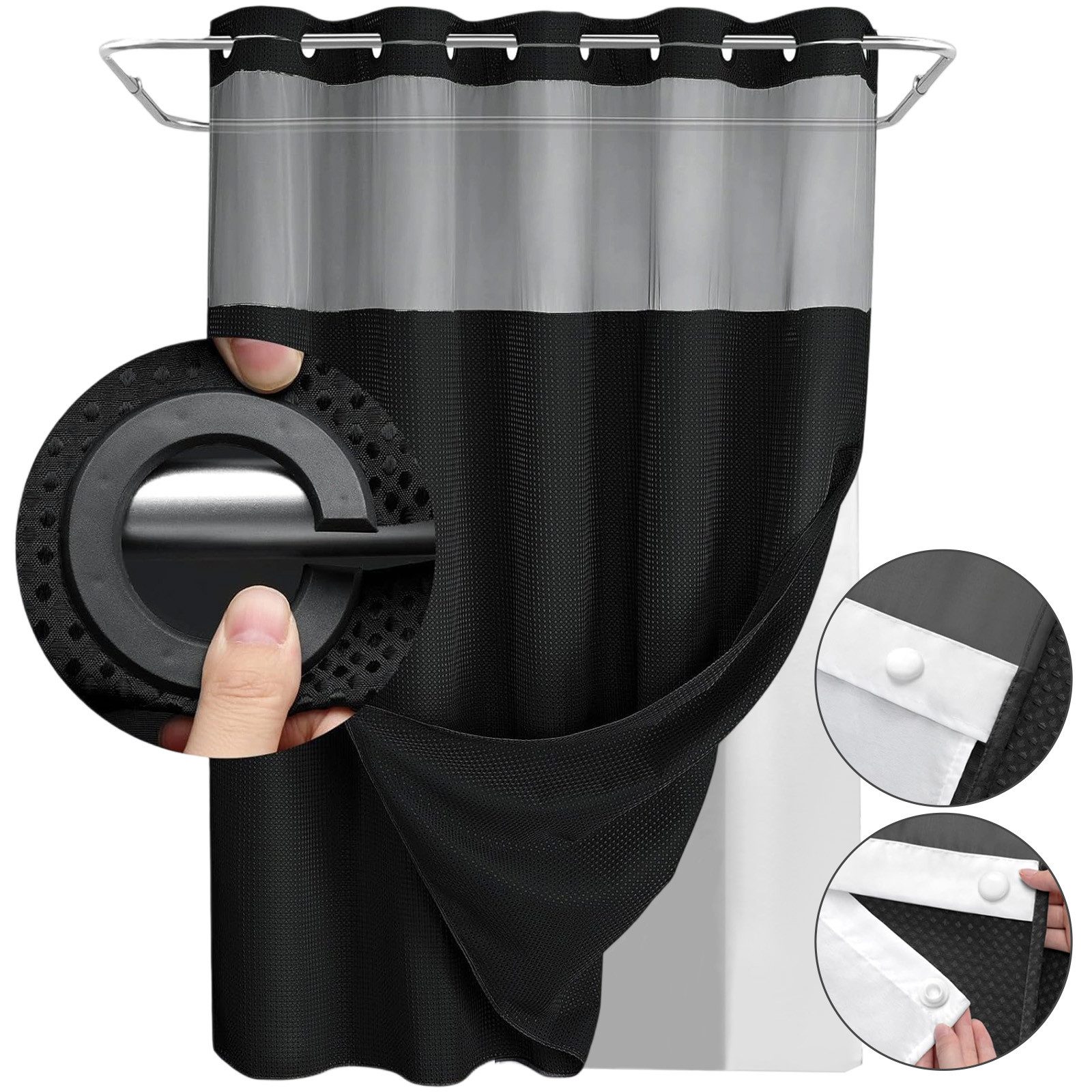 Besonders praktisch ist der integrierte Innenvorhang mit Druckknöpfen. Er kann schnell entfernt, separat gereinigt oder bei Bedarf ausgetauscht werden. Zwei Magnete an den unteren Ecken sorgen dafür, dass der Vorhang während des Duschens stets an seinem Platz bleibt.