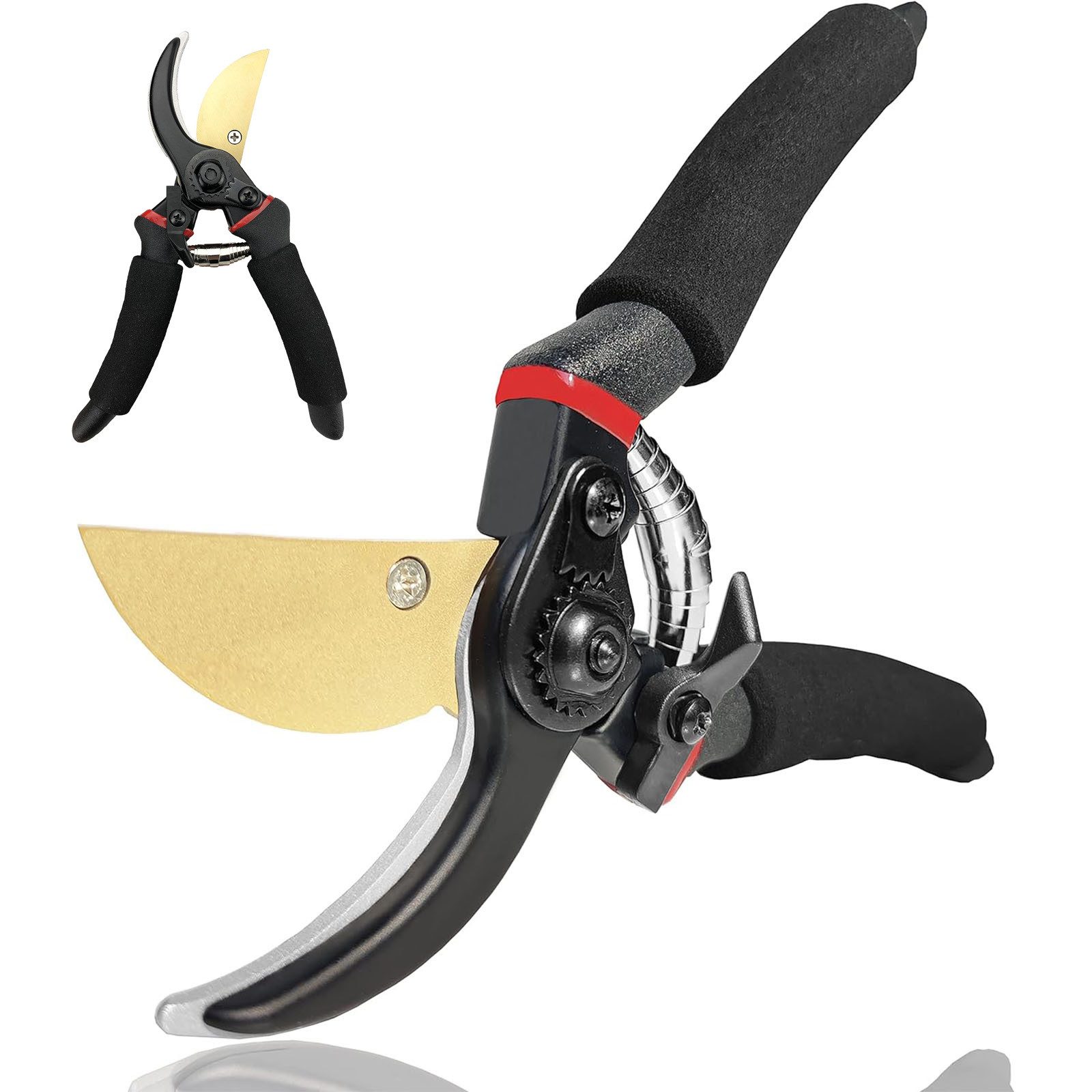 Die REDOM Gartenschere überzeugt durch ihre SK-5 Stahlklinge mit titanbeschichteter Oberfläche.