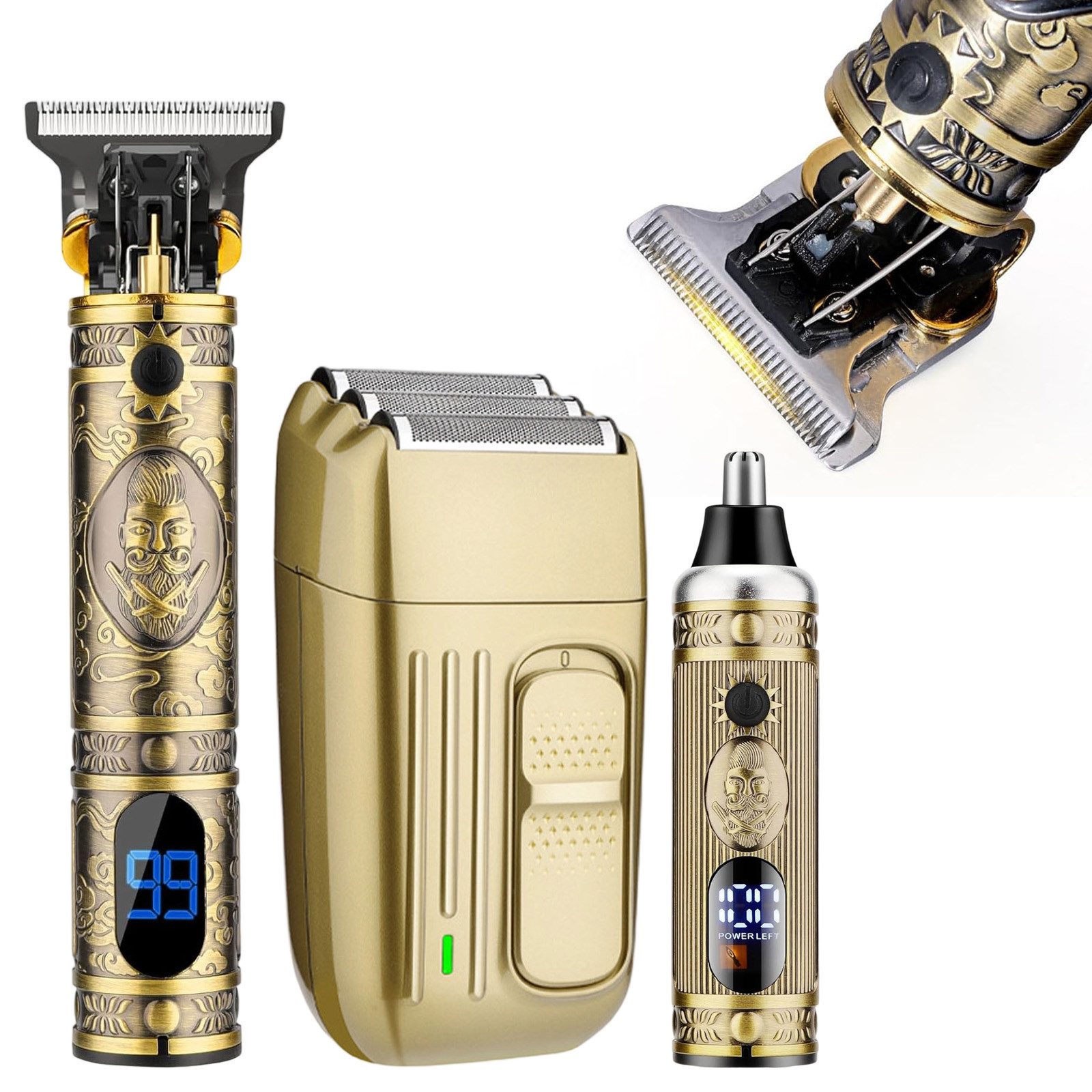 Die hochwertigen T-förmigen Klingen und ultradünnen Dreifachklingen bestehen aus robustem Hochkohlenstoffstahl und gewährleisten sauberes Schneiden ohne Ziepen. Geeignet für Männer, Frauen und Kinder. Ob im privaten Gebrauch oder im Salon – dieses Set erfüllt unterschiedlichste Styling-Bedürfnisse und eignet sich auch hervorragend als Geschenk.