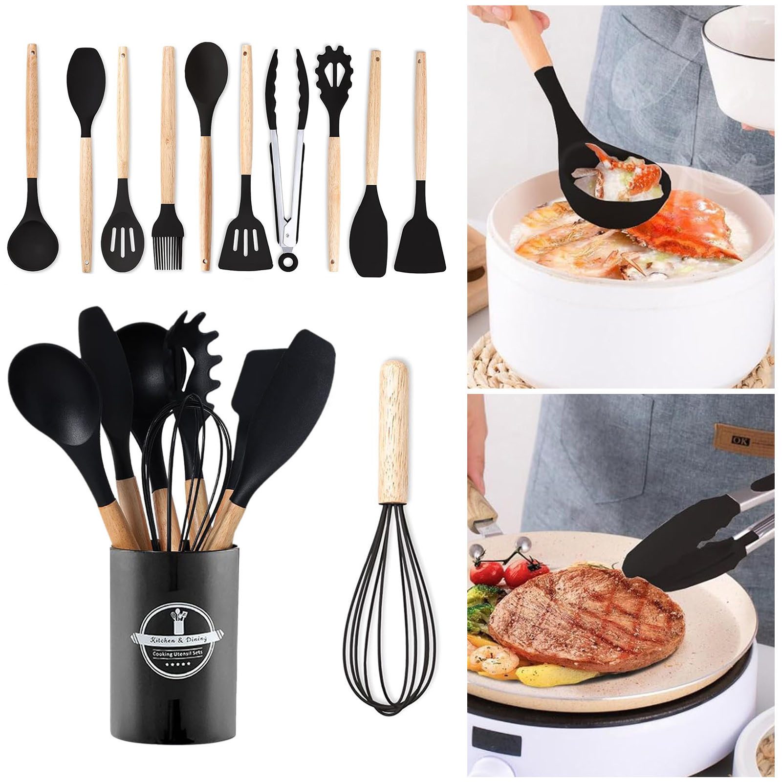 Bringen Sie Stil, Komfort und Langlebigkeit in Ihre Küche – mit dem 12-teiligen Premium-Küchenutensilien-Set aus Silikon und Holzgriffen. Dieses Set vereint funktionales Design mit hochwertiger Verarbeitung und ist ideal für Hobbyköche und Profis gleichermaßen.