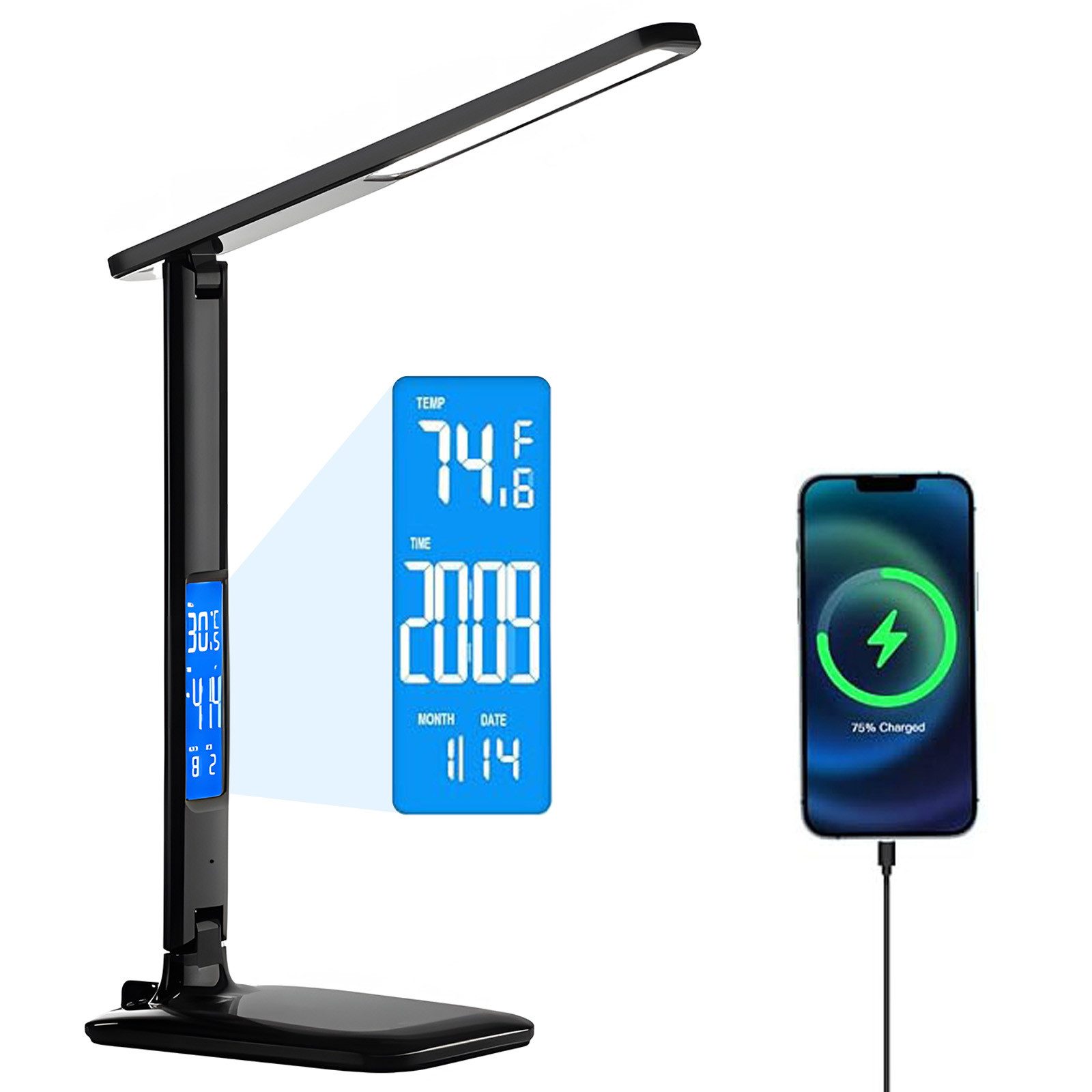 • Multifunktionales Display: Integrierte Uhr mit Wecker, Kalender und Thermometer – ideal für Schreibtisch, Nachttisch oder Büroalltag.