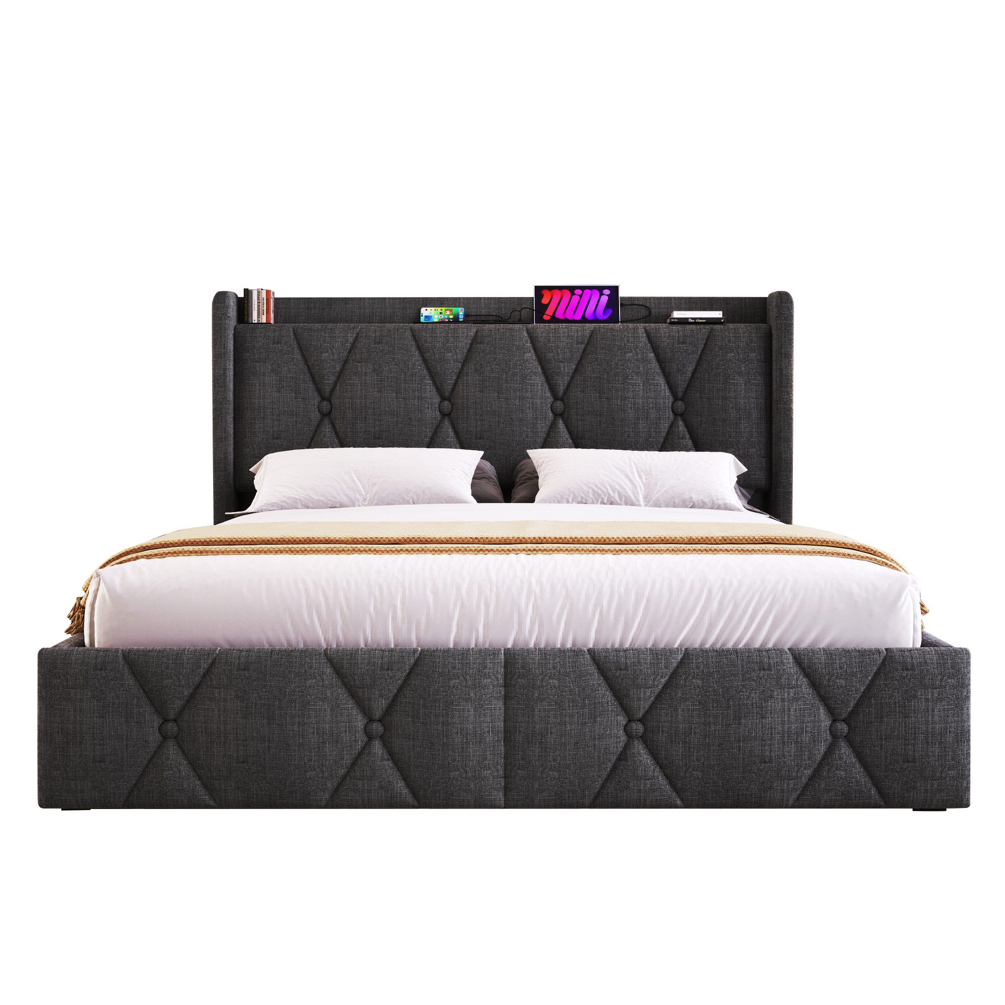 Funktionale Extras:Genießen Sie die moderne Ladefunktion mit 2 USB-Anschlüssen und 2 Steckdosen. Das Bett benötigt keine zusätzliche Boxspring und ist mit 4 geräumigen Schubladen ausgestattet.