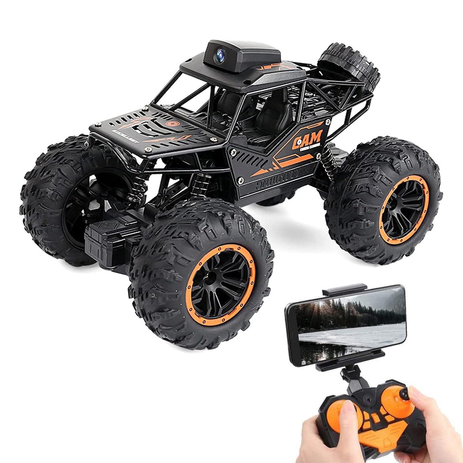 Die 2MP-Kamera auf dem RC-Geländewagen überträgt spannende Fahrten live auf dein Smartphone.