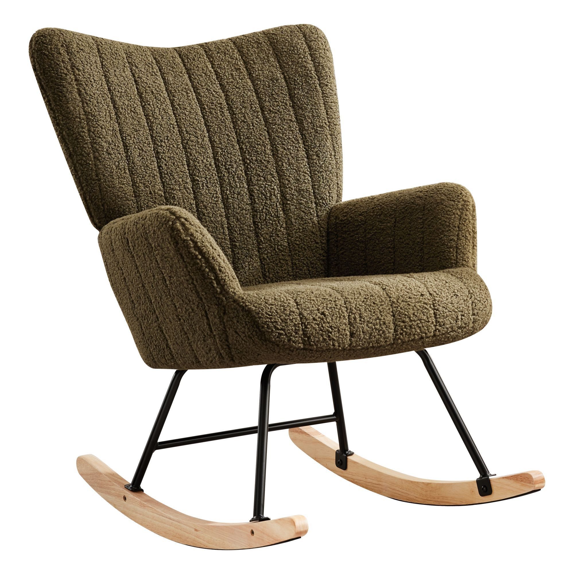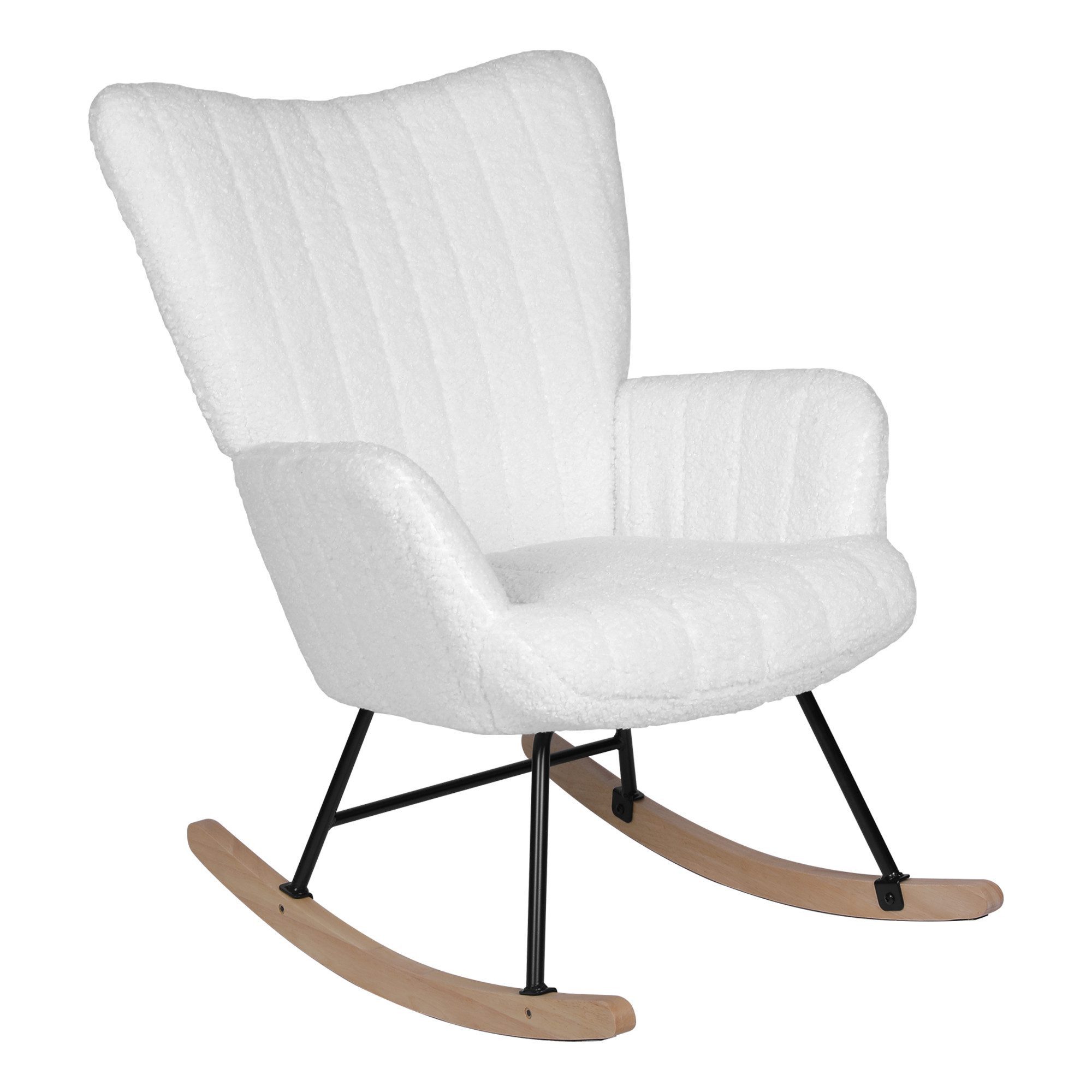 Der REDOM-Schaukelstuhl verbindet Eleganz und Funktionalität in einem Möbelstück. Der Bezug aus Teddyplüsch verleiht ihm eine weiche, angenehme Haptik und macht ihn zum perfekten Ort für entspannte Stunden. Die Kombination aus stabilem Metall und Holz sorgt für eine langlebige Struktur, während der sanfte Schwingmechanismus ein einzigartiges Entspannungserlebnis bietet. Sein modernes, schlichtes Design fügt sich mühelos in verschiedene Wohnstile ein. Vielseitig nutzbar im Wohnzimmer, Kinderzimmer oder Arbeitszimmer, ist dieser Schaukelstuhl die perfekte Ergänzung für ein stilvolles Zuhause.