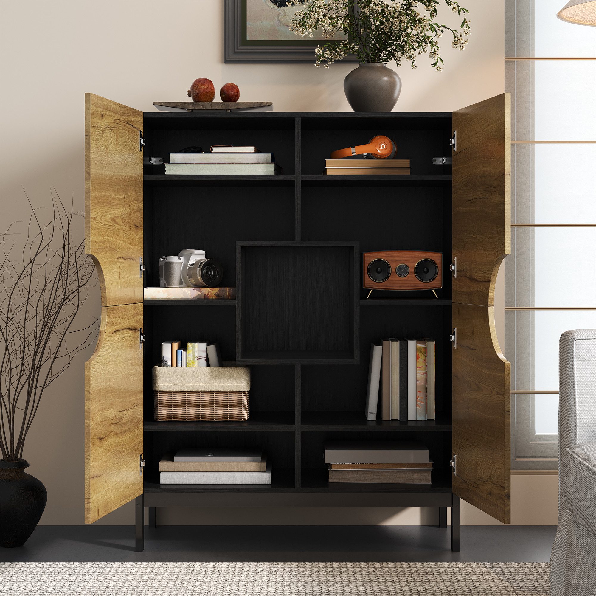 Diese Vitrine und der Schuhschrank bieten eine perfekte Kombination aus Praktikabilität und stilvollem Design. Die Kombination von drei Innenregalen, die Platz für 8-15 Paar Schuhe bieten, und einem offenen Mittelfach für Dekorationsobjekte ermöglicht eine ideale Aufbewahrung und Präsentation Ihrer Gegenstände.