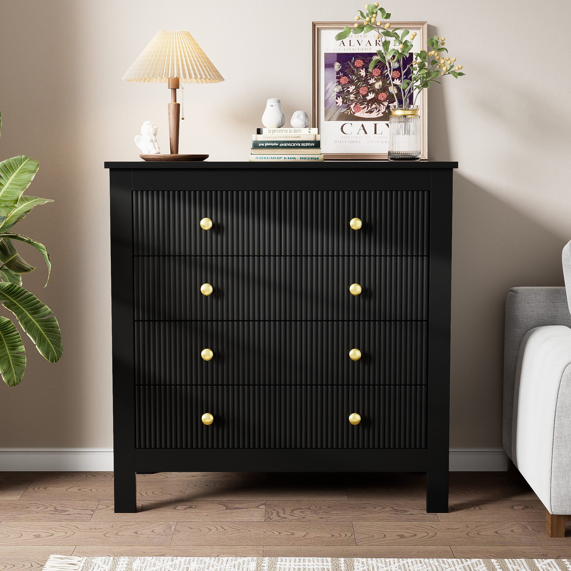Diese Kommode mit fünf Schubladen vereint elegantes Design und hohe Funktionalität. Jede Schublade verfügt über eine strukturierte Oberfläche, die für ein optisch ansprechendes Aussehen und ein einzigartiges haptisches Erlebnis sorgt. Die stabilen, verdickten Beine bieten optimale Haltbarkeit, sodass das Sideboard über Jahre hinweg zuverlässig im Gebrauch bleibt. Die vergoldeten Griffe setzen edle Akzente und erleichtern das Öffnen und Спрятать der Schubladen. Das Sideboard bietet großzügigen Stauraum, ideal für die Aufbewahrung von Kleidung, Accessoires oder anderen Haushaltsgegenständen. Dank seines vielseitigen Designs ist es sowohl für das Schlafzimmer als auch das Wohnzimmer oder den Flur geeignet und fügt sich harmonisch in jedes Raumkonzept ein. Es kombiniert Eleganz mit praktischer Funktionalität und wird so zu einem wertvollen Möbelstück für jedes Zuhause.