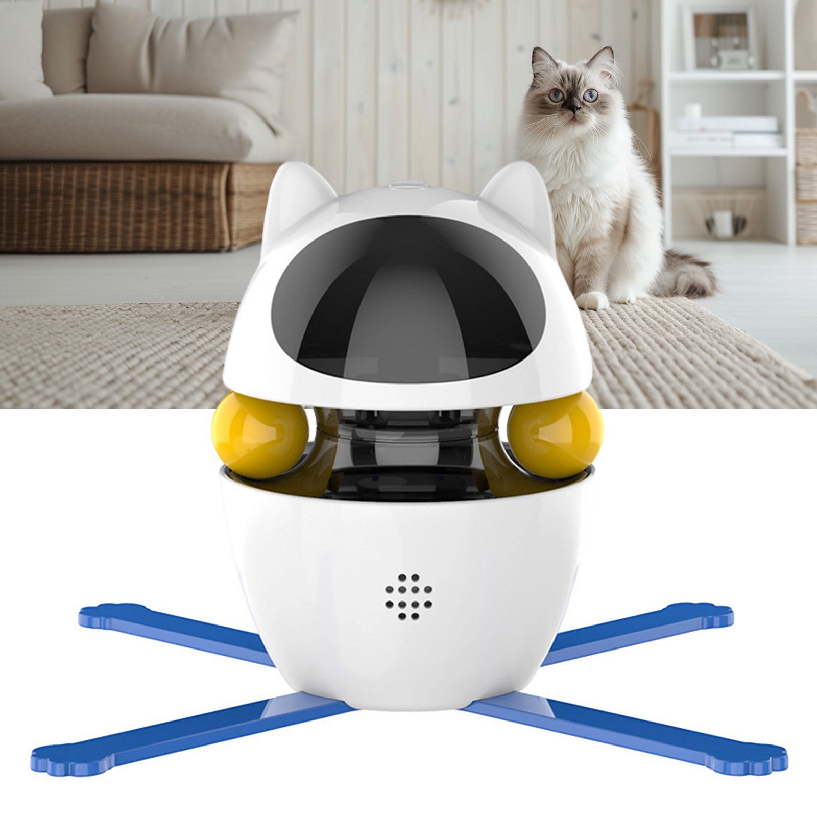 Eigenschaften | Ein-Knopf-Schalter, Infrarot mit Bewegungssensor, einstellbare Rotationsgeschwindigkeiten, Lichtzeiger, Feder, Katzenkugeln, Anionenreinigung |