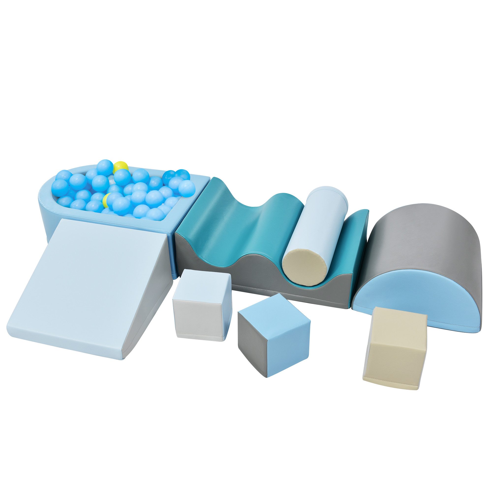 Das Softbaustein-Set bietet eine vielseitige Spielumgebung für Kleinkinder und fördert spielerisch die Entwicklung von großen Bewegungsfähigkeiten. Die neun einzelnen Bausteine lassen sich zu verschiedenen Formen kombinieren, was für abwechslungsreichen Spielspaß sorgt. Kinder können klettern, rutschen, sich hinlegen oder im Bällebad spielen. Das Set unterstützt dabei nicht nur die körperliche Aktivität, sondern auch die Entwicklung der Hand-Auge-Koordination und die Wahrnehmung von Farben und Formen. Gefertigt aus sicheren und hochwertigen Materialien wie Polyurethan und EPE, entspricht es den höchsten Sicherheitsstandards und sorgt für langanhaltenden Spielspaß. Durch das leichte Gewicht können Mütter die Bausteine problemlos bewegen und in verschiedenen Räumen wie dem Kinderzimmer, Wohnzimmer oder Babyzimmer einsetzen. Die pastellfarbenen Bausteine schaffen zudem eine beruhigende Atmosphäre, die das Spielen und Lernen für die Kleinen zu einem besonderen Erlebnis macht.