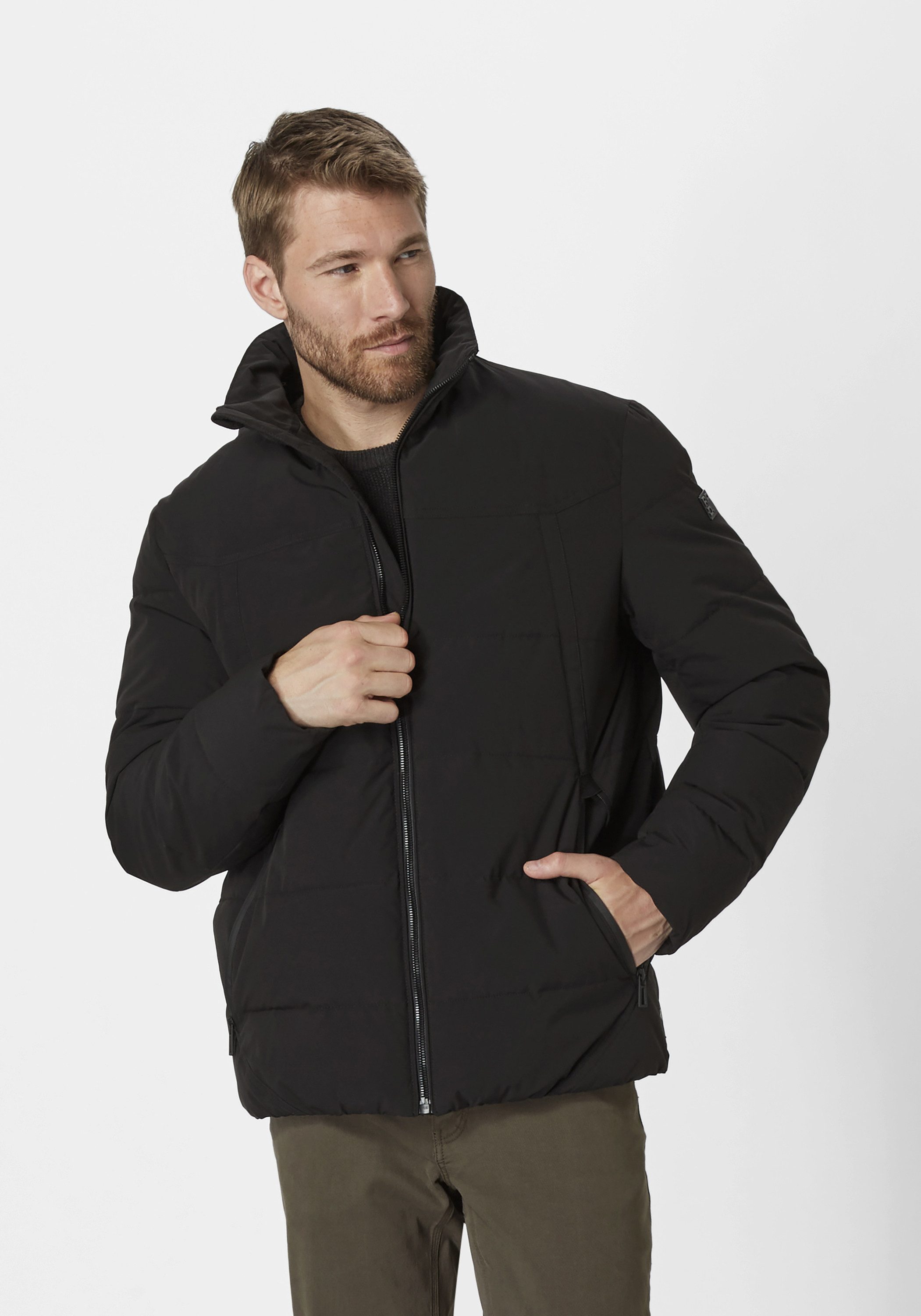 Taschen | Innentasche links mit Reißverschluss, rechts Innentasche mit Klettverschluss. Außentaschen: zwei seitliche Eingrifftaschen mit Reißverschluss. |