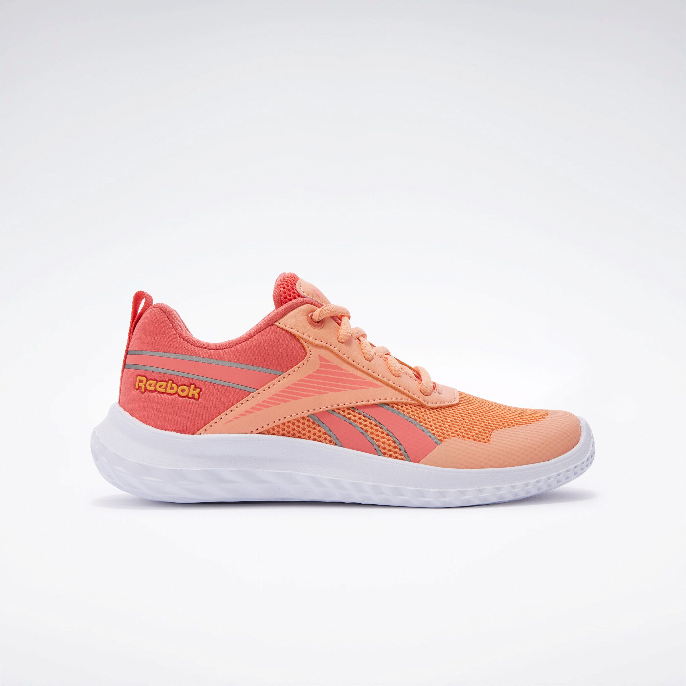 Mit den Laufschuhen »RUSH RUNNER 5« von Reebok macht spielen und toben noch mehr Spaß! Eine starke Dämpfung im Schuh reduziert Trittstöße und macht das Laufen somit angenehmer. Die EVA-Zwischensohle federt vor allem stark beanspruchte Stellen, wie zum Beispiel die Ferse, ab. Die Knöchel liegen dank des niedrigen Schafts frei, weshalb das Schuhwerk auch leicht und flexibel bleibt. Mit der Schnürung lässt er sich einfach an den Fuß anpassen und fest zu binden. So bleiben die Pausen wegen lockeren Schuhen beim Laufen erspart.