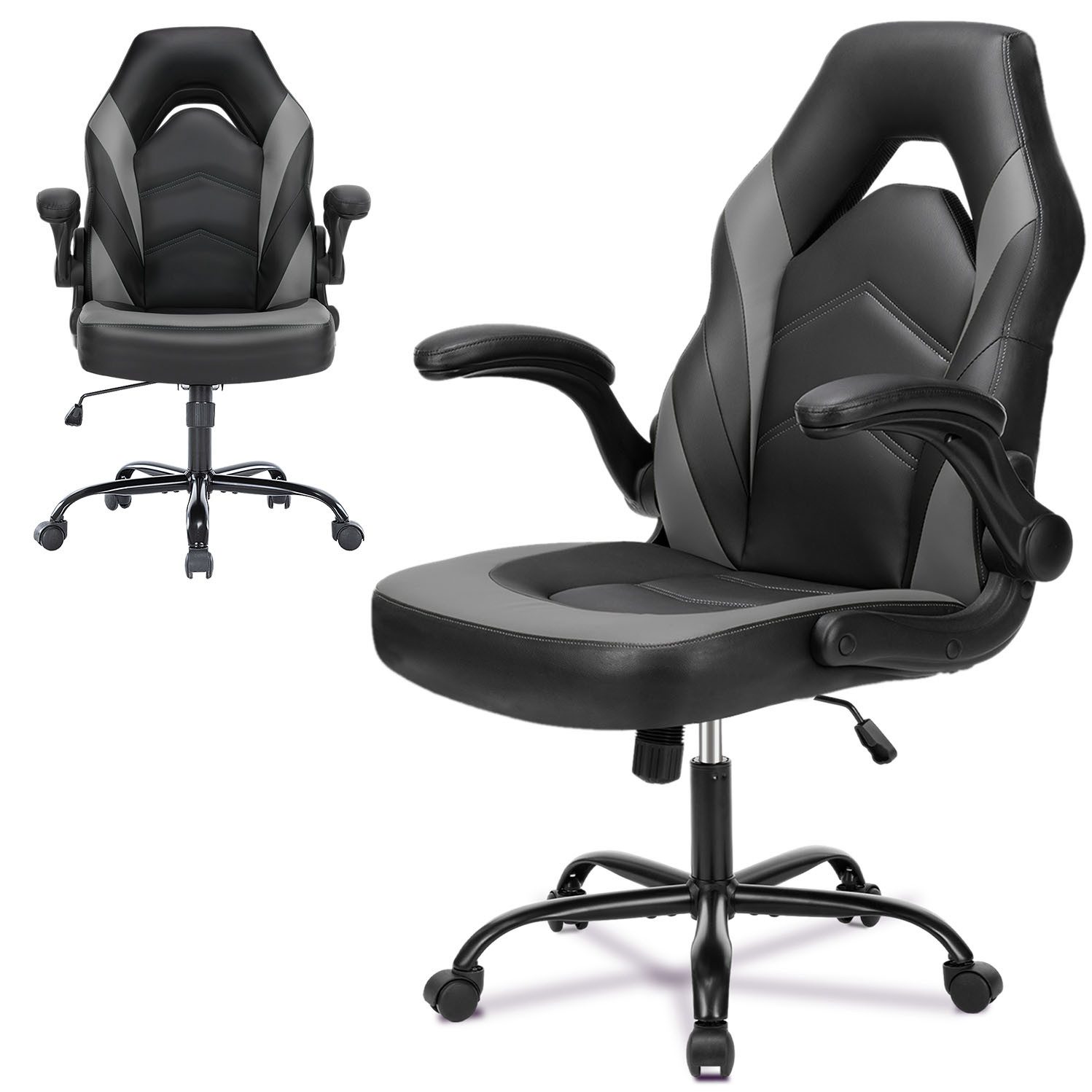 Der Gaming-Stuhl besteht aus PU-Leder, das weich, wasserdicht und langlebig ist. Die Basis hält bis zu 113 kg. Die drehbaren Rollen laufen leise und glatt und sind für verschiedene Bodenbeläge geeignet, ohne Schäden zu verursachen.