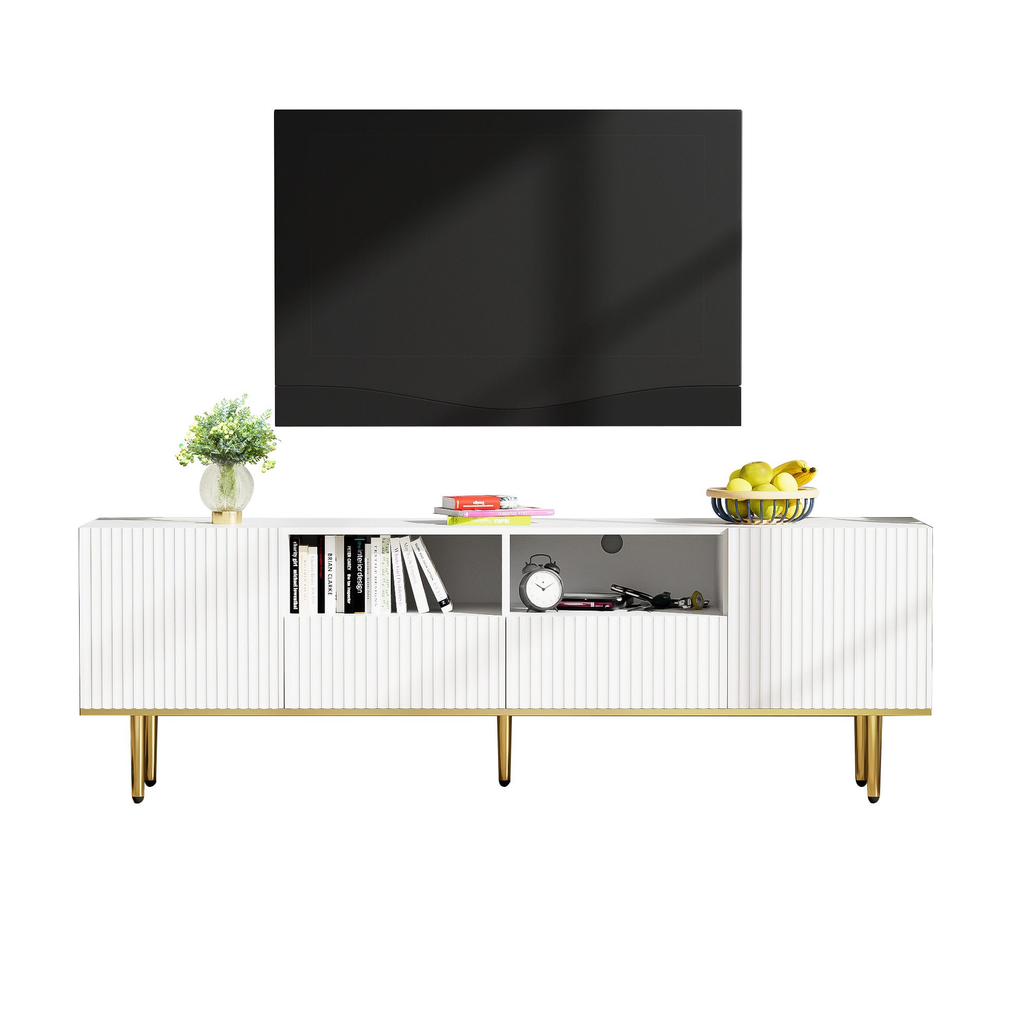 Eleganter TV-Schrank mit Goldakzenten – Stil und Funktion vereint
