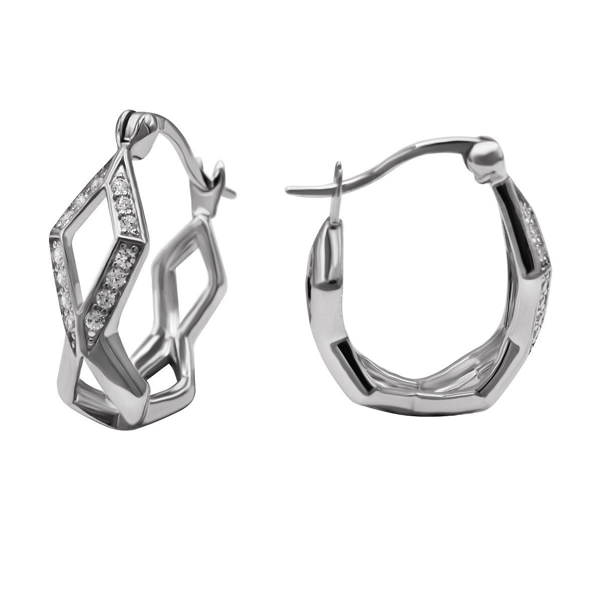 Eigenschaften Ohrschmuck | handgefertigt, Rautenmuster, Zirkoniabesatz, Klappverschluss, rhodiniert |