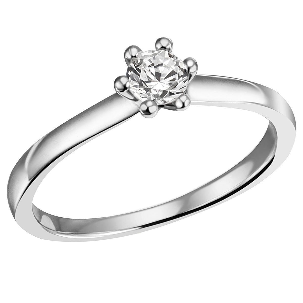 Solitärring, 6er Stotzen, 0,25ct W/Si, wahlweise in Weiß-oder Gelbgold