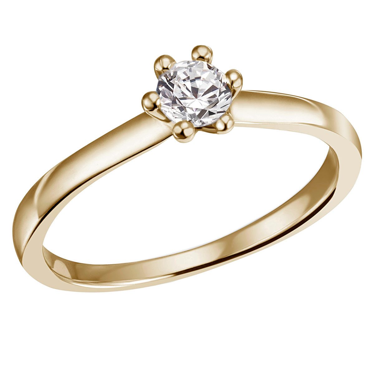 Solitärring Verlobungsring, 585er Gelb- oder Weißgold, 6er Stotzen, 0,25ct SI
