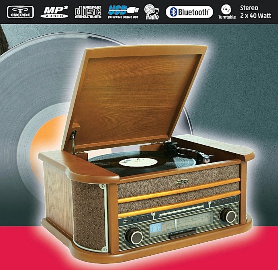 HIF2004BT Retro HiFi Anlage im Echtholz-Gehäuse Radioplattenspieler