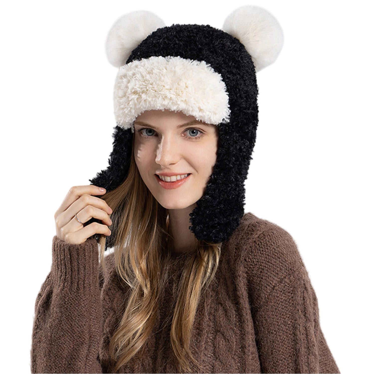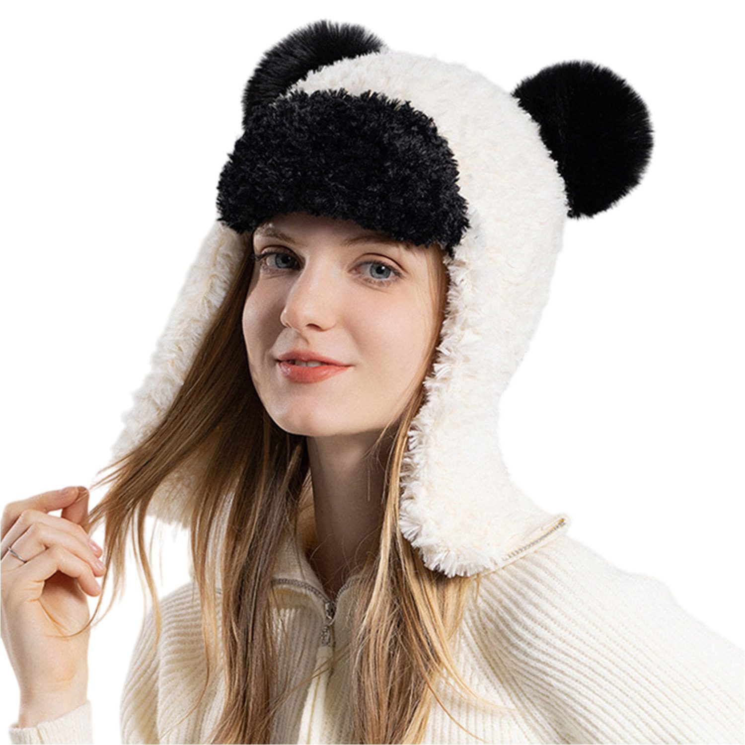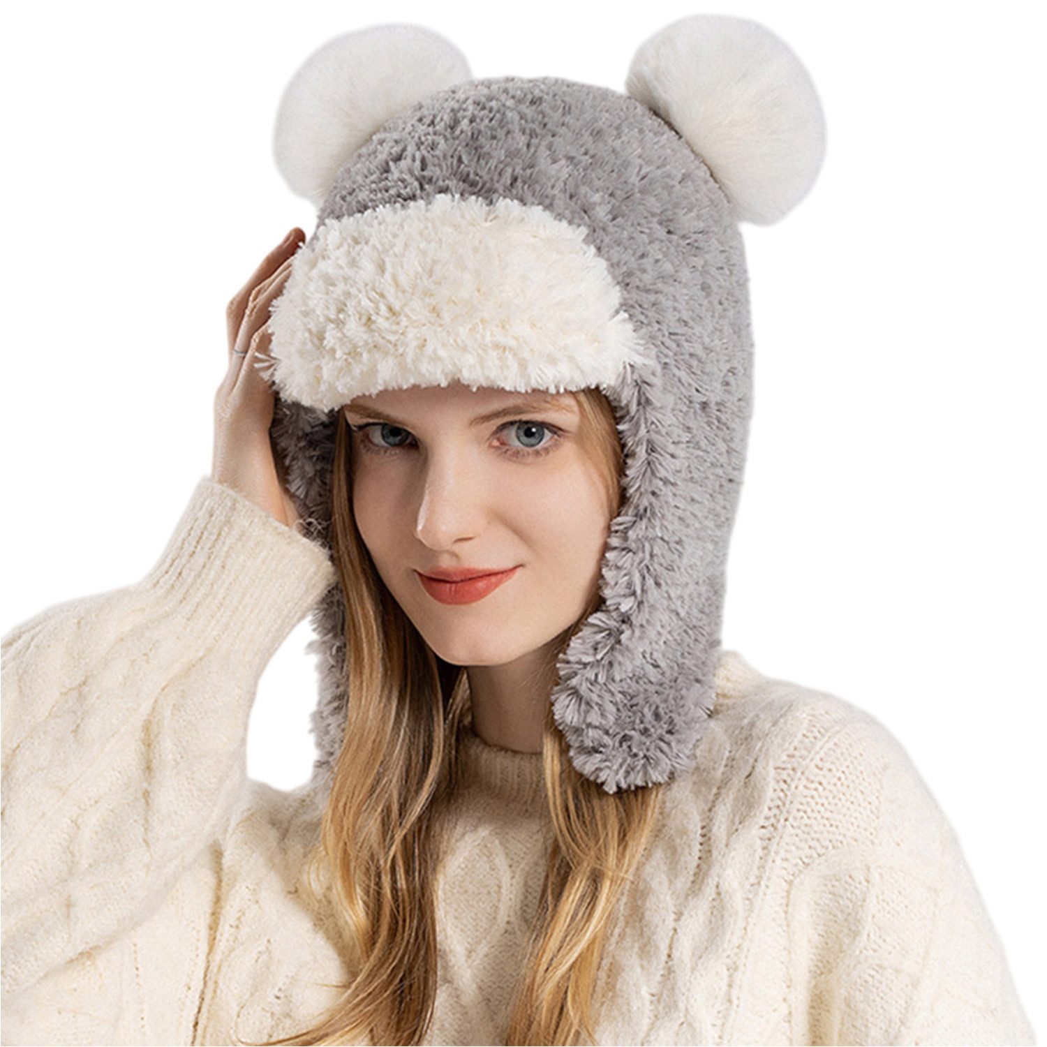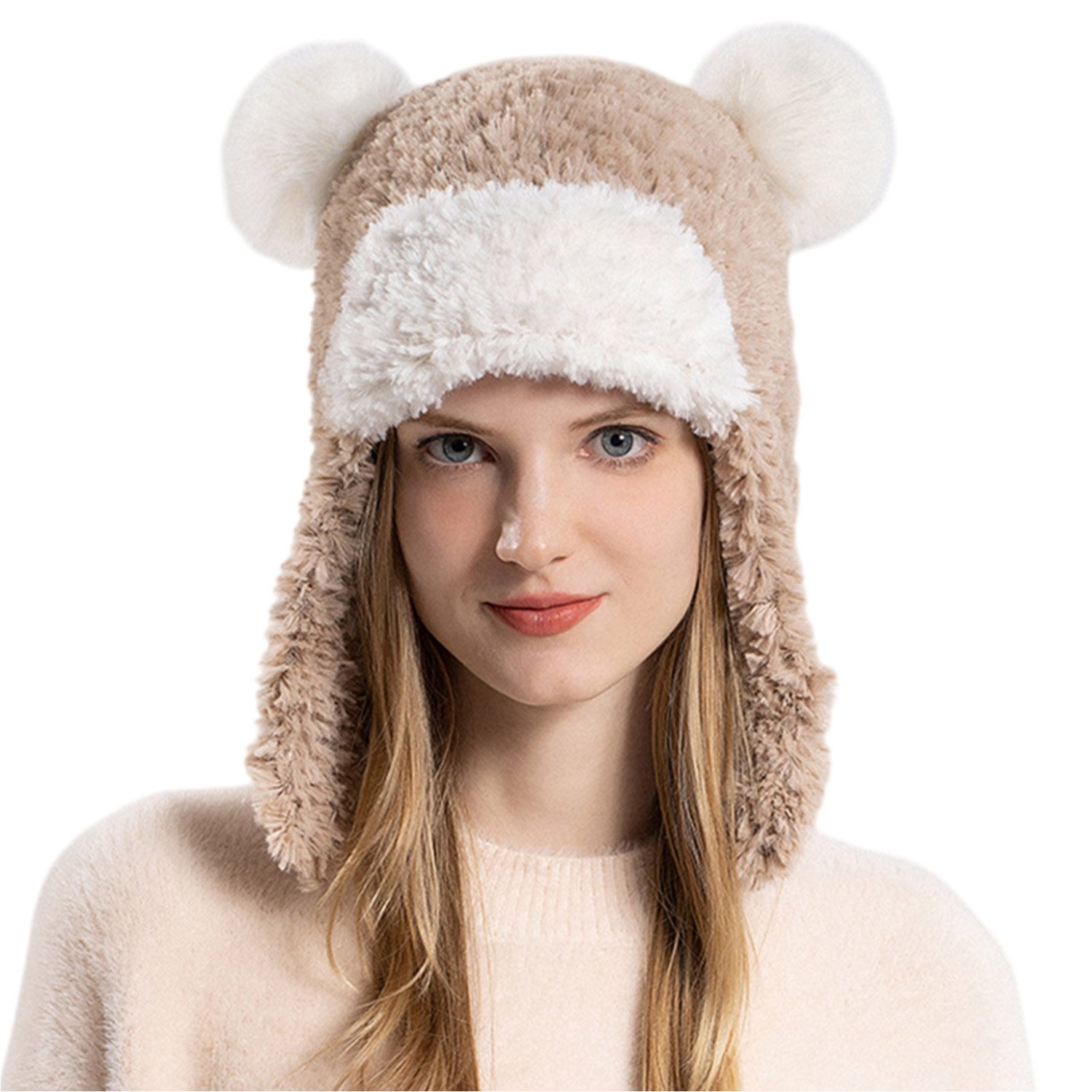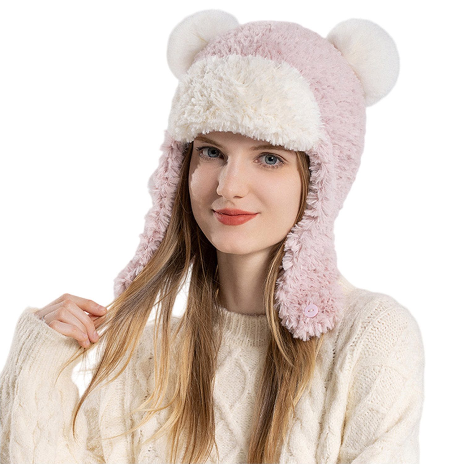 Die wintermütze damen ist aus bequemem und warmem Plüsch, geeignet für Outdoor-Reisen im Winter und hält warm.