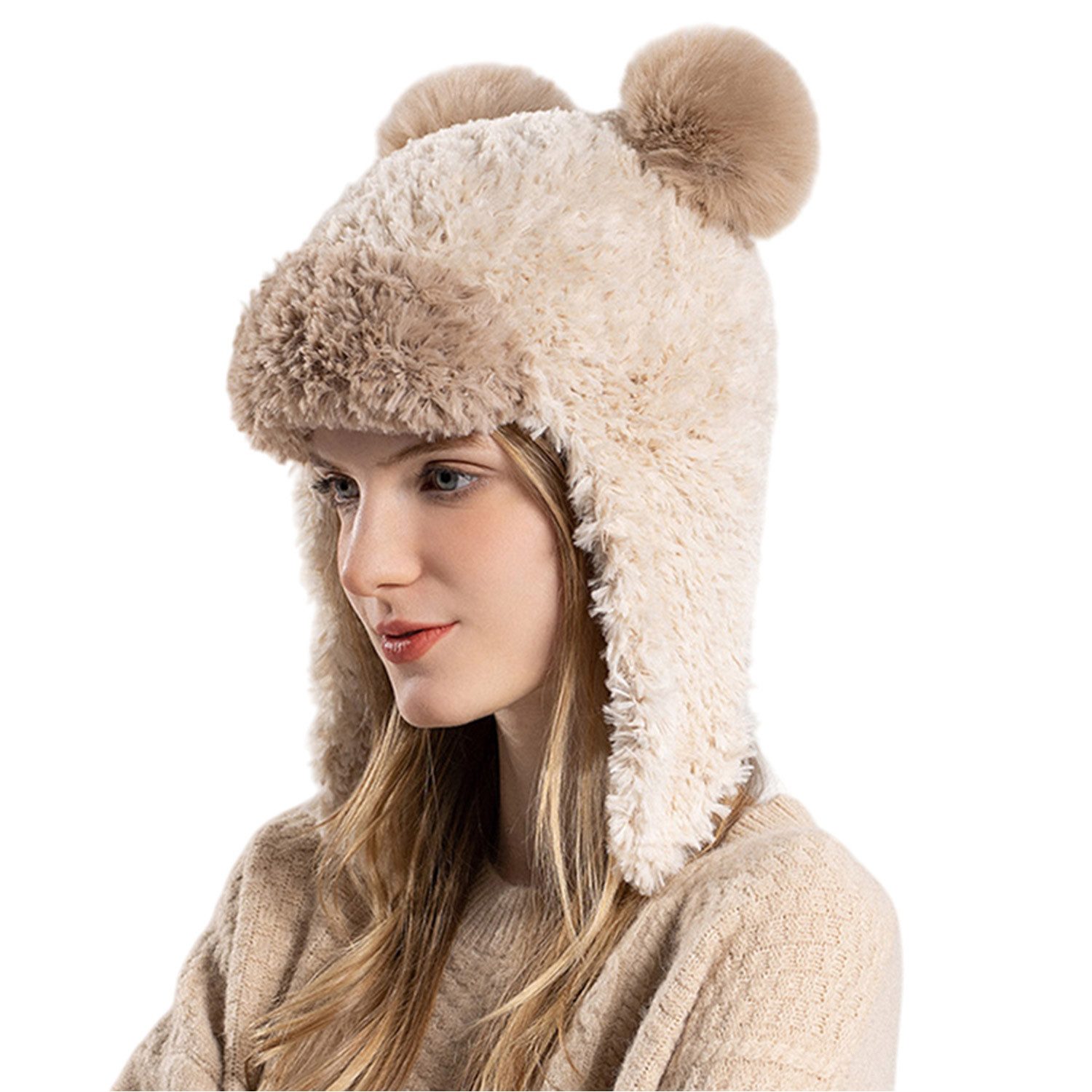 Der Stoff der mütze damen winter besteht aus Polyester, das sich weich, flauschig und geschmeidig anfühlt.