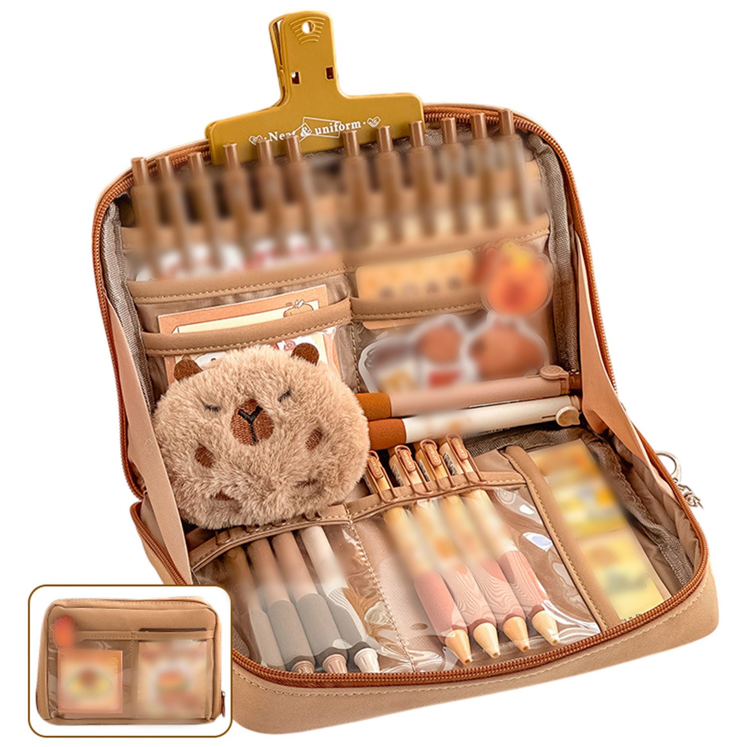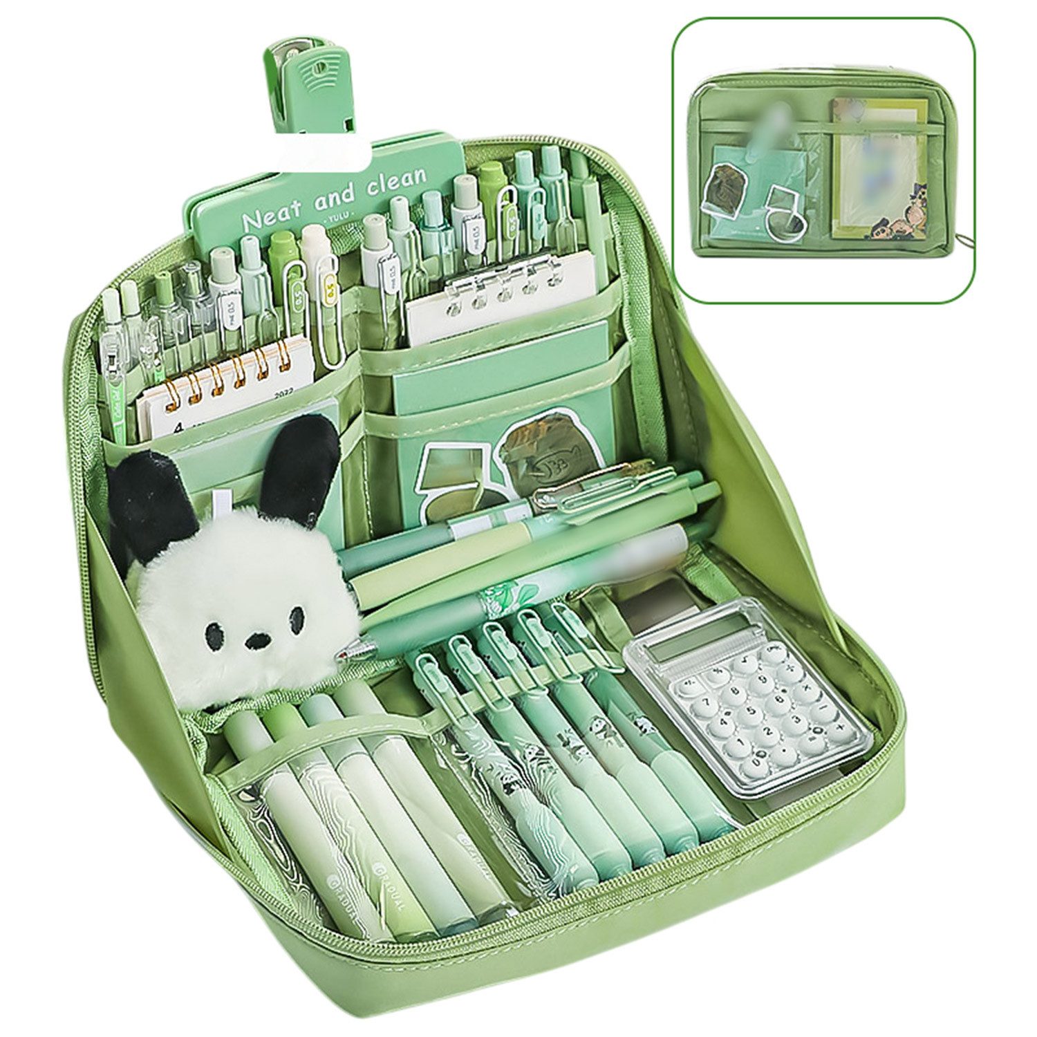 Das Federtasche bietet Platz für über 100 Stifte, und auch kleine Notizbücher, Haftnotizen und Taschenrechner können problemlos verstaut werden. Es eignet sich sehr gut für Schüler aller Niveaus, die verschiedene Schreibwaren und Schreibutensilien mit sich führen.