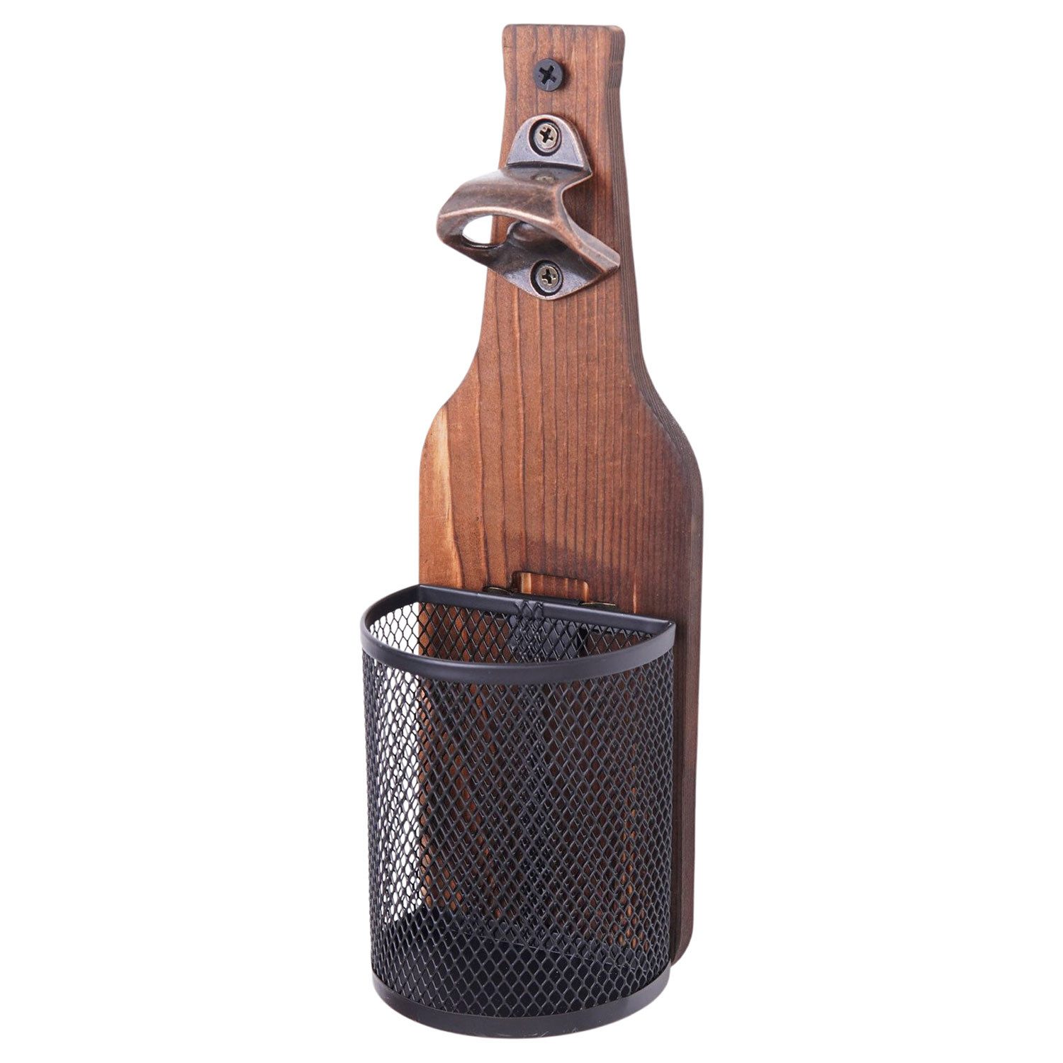 Der Wand-Flaschenöffner im Retro-Design ist nicht nur praktisch, sondern auch ein echter Blickfang. Seine vintage Holzoptik kombiniert mit dem metallischen Öffner macht ihn zu einem stilvollen Accessoire für jedes Ambiente.