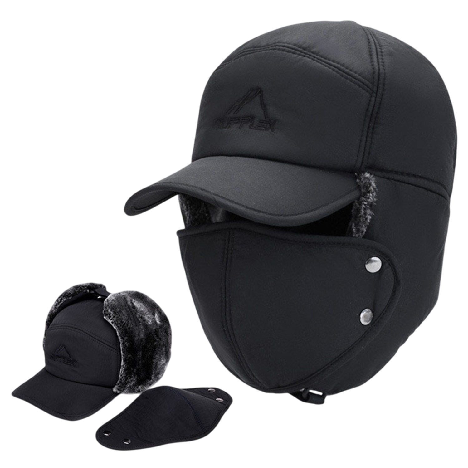 Herren Schirmmütze Innenfutter Wintermütze mit Ohrenwärmer Masken Warme Wintermütze mit Ohrenklappen, Ultrawarm, Weich, Winddicht, Verstellbar und abnehmbar
