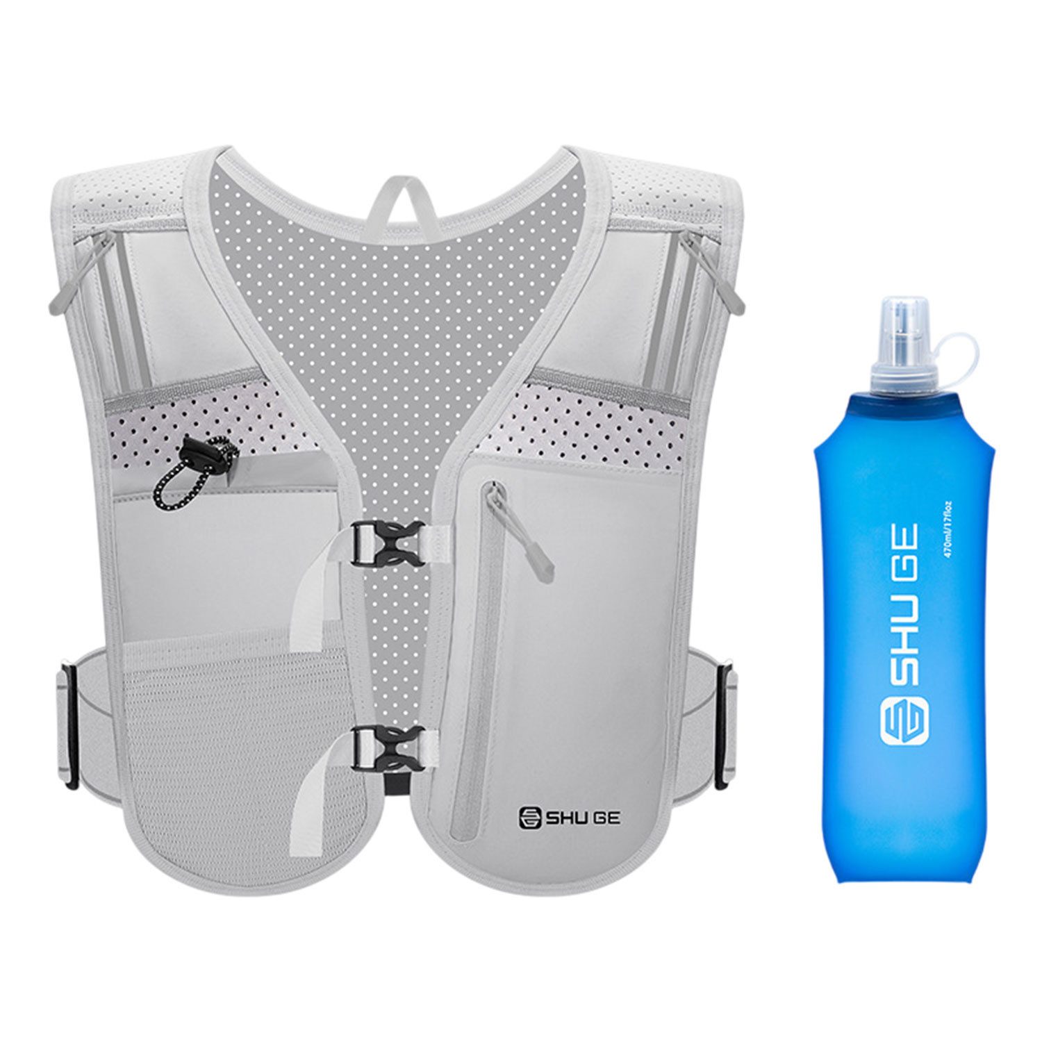 Die linke Sportflaschentasche mit elastischen Verstellschnallen eignet sich für Wasserflaschen. Die rechte separate Handytasche mit Reißverschluss und wasserdichtem Innenmaterial ist wasserdicht. Die untere Netztasche bietet Platz für Energiegel, Kopfhörerkabel, Karten usw. Kleine Taschen an beiden Schulterseiten bieten Platz für kleine Gegenstände wie Schlüssel und Kopfhörer. Die große Netztasche auf der Rückseite bietet Platz für große Gegenstände wie Sporthandtücher.