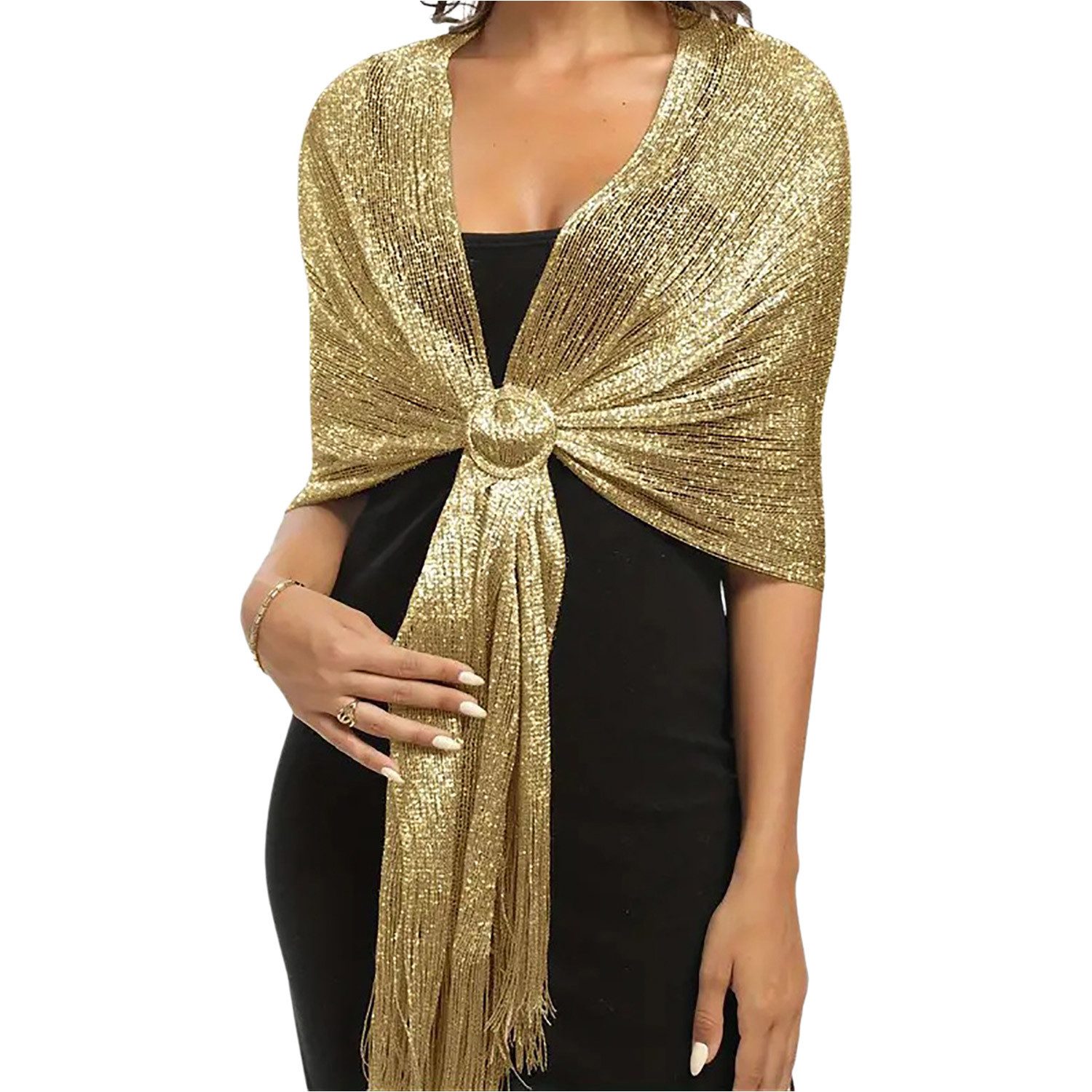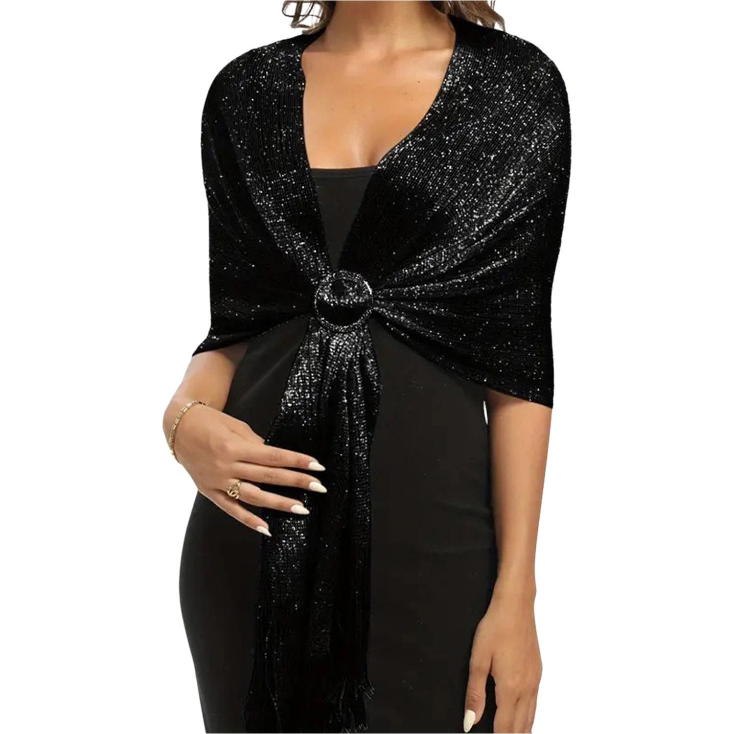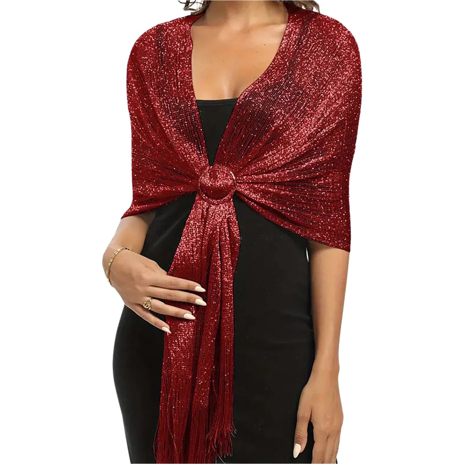 Der Abendkleid Damen lang schal kann Ihre Schultern und Arme perfekt bedecken. Hautfreundlicher und weicher Stoff, angenehm zu tragen, leicht und einfach zu tragen, bezaubernd. Die glänzenden, leuchtenden Quasten machen Sie im Licht noch auffälliger.