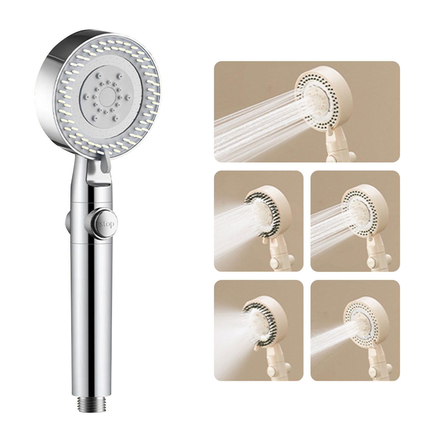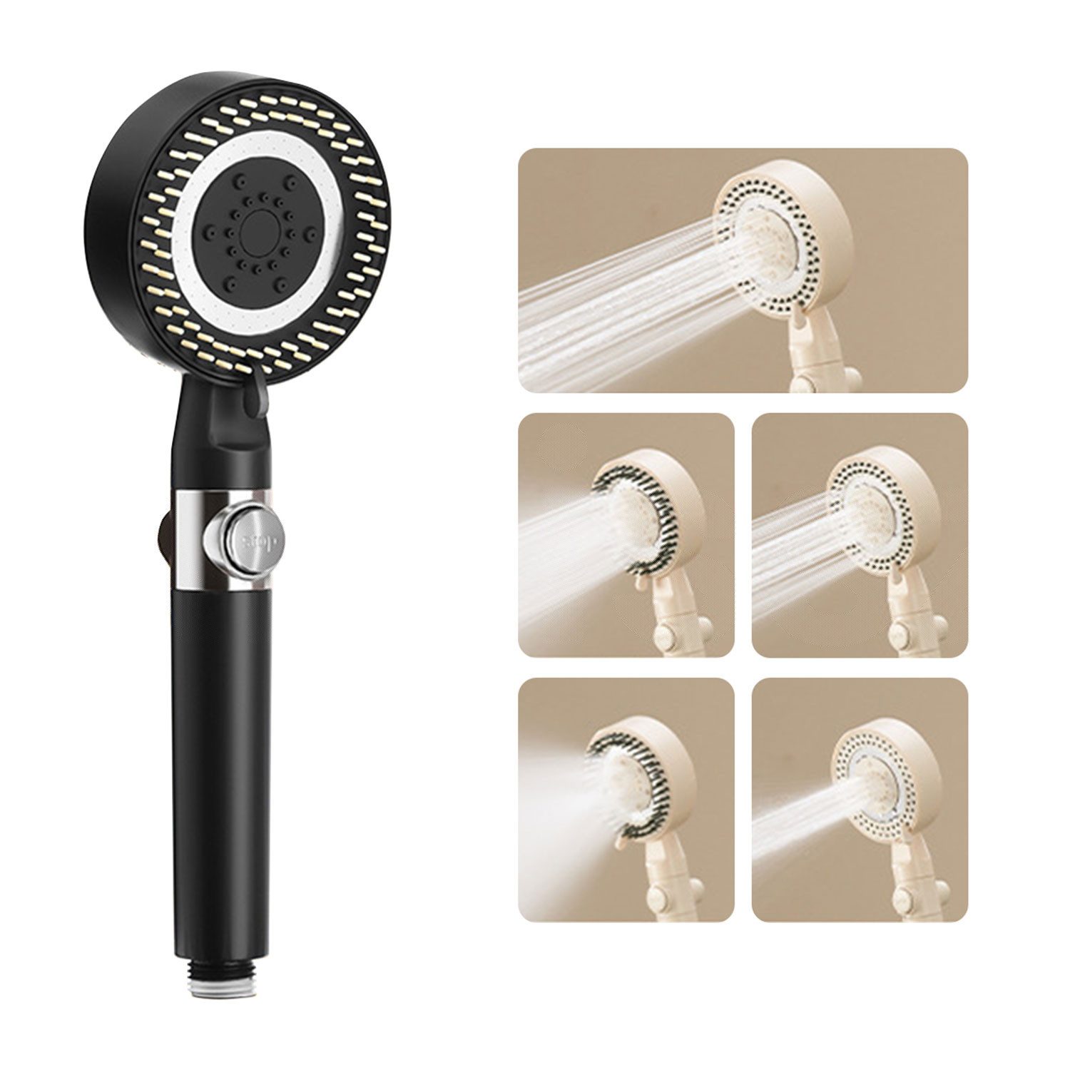 Diese Handbrause verfügt über 5 Modi, verschiedene Modi passen sich Ihren unterschiedlichen Duschbedürfnissen an und bieten Ihnen ein anderes Badeerlebnis.