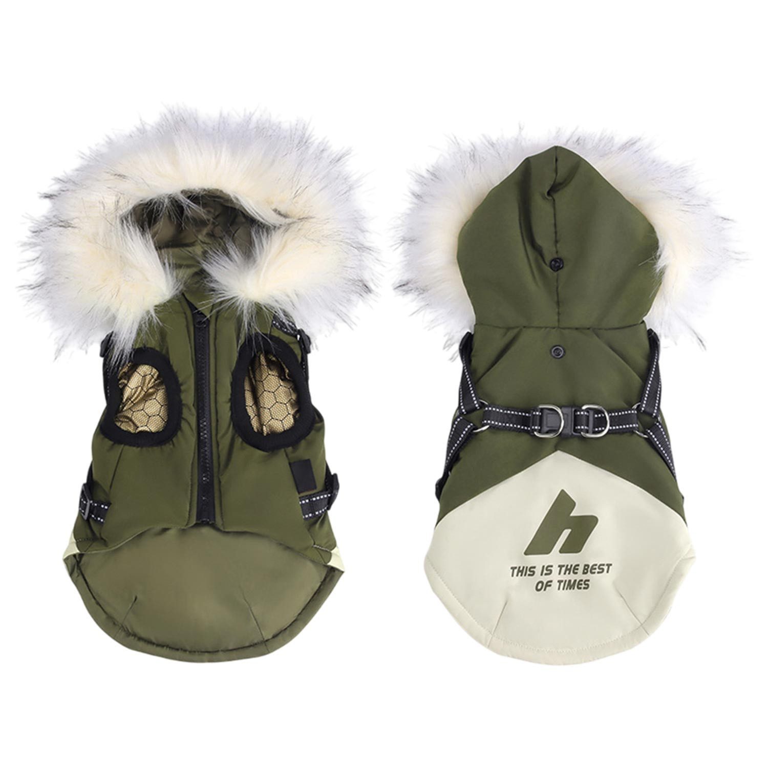 Dieser modische Hundemantel mit Kapuze und weichem Kunstfellbesatz schützt Ihren Vierbeiner zuverlässig vor Kälte und Wind – ideal für Spaziergänge bei niedrigen Temperaturen, Herbst und Winter
