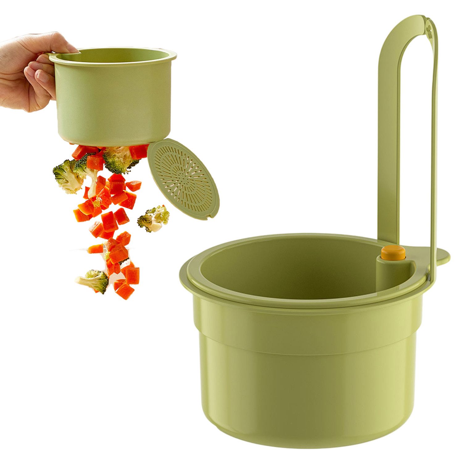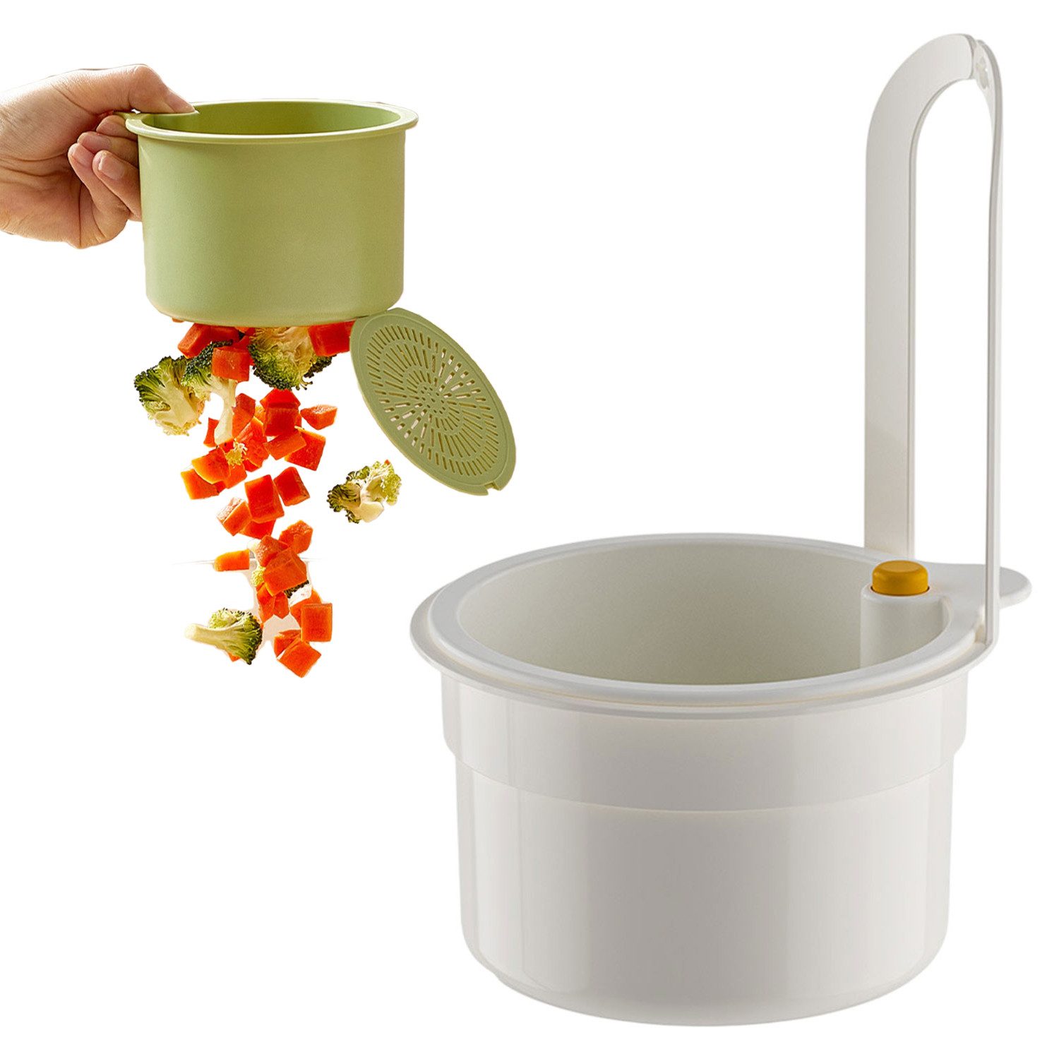 Dank des hängenden Designs spart der Filterkorb wertvollen Platz auf der Arbeitsfläche. Gleichzeitig ermöglicht er eine organisierte Aufbewahrung und sorgt für ein aufgeräumtes Spülbecken – die perfekte Kombination aus Funktionalität und Ästhetik für jede moderne Küche.