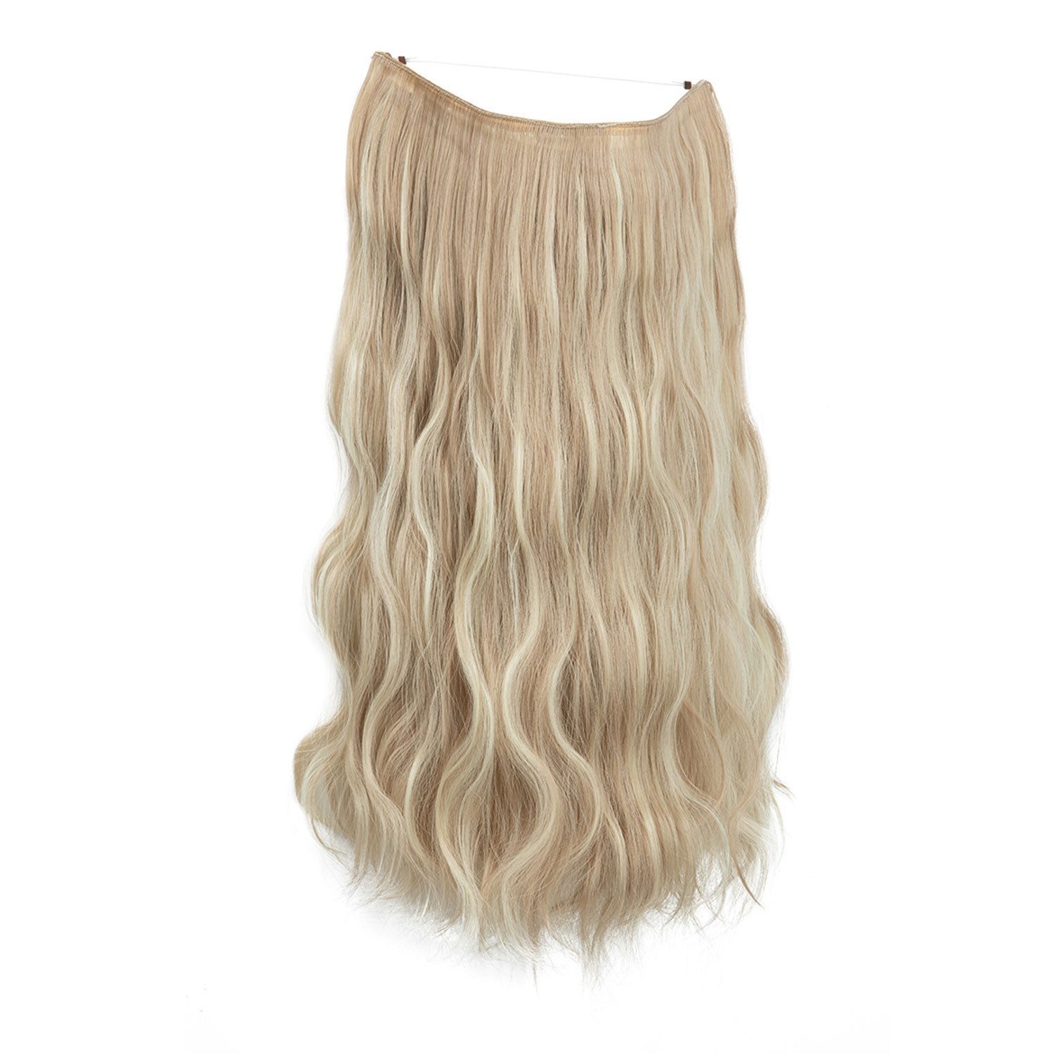 U-Form Haarverlängerung mit Nylonband Haarverdichtung Haar Extensions für Frauen Einstellbar Secrets Haarteil Synthetik, Extensions mit Schnur und Clips, Lange Gewellt Extensions mit Einstellbarer Größe