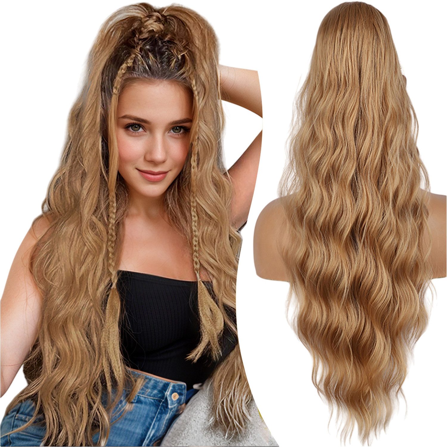 Perücke Damen, Perücke Fasching Damen, Pferdeschwanz Haarteil mit Kordelzug, Haarverlängerung Zopf Extension, Haarteile Für Dünnes Haar, Blonde Perücke Lang