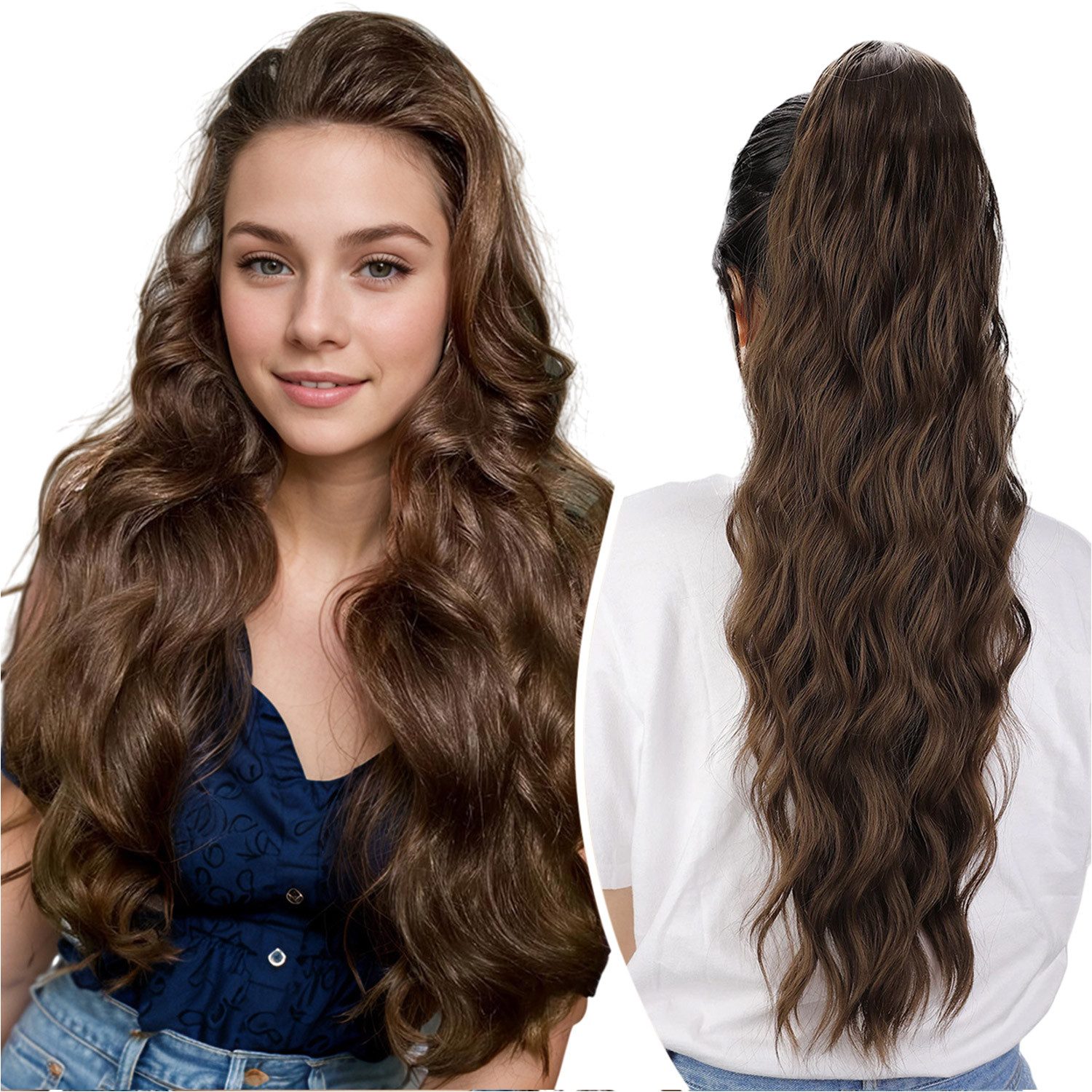 Dieser lange, lockige Pferdeschwanz ist weich, leicht, bequem, lang und dicht. Er kann schlechte Haarschnitte schnell korrigieren, Ihrem natürlichen Haar mehr Длина verleihen und eine Vielzahl von Outfits für verschiedene Anlässe kreieren.