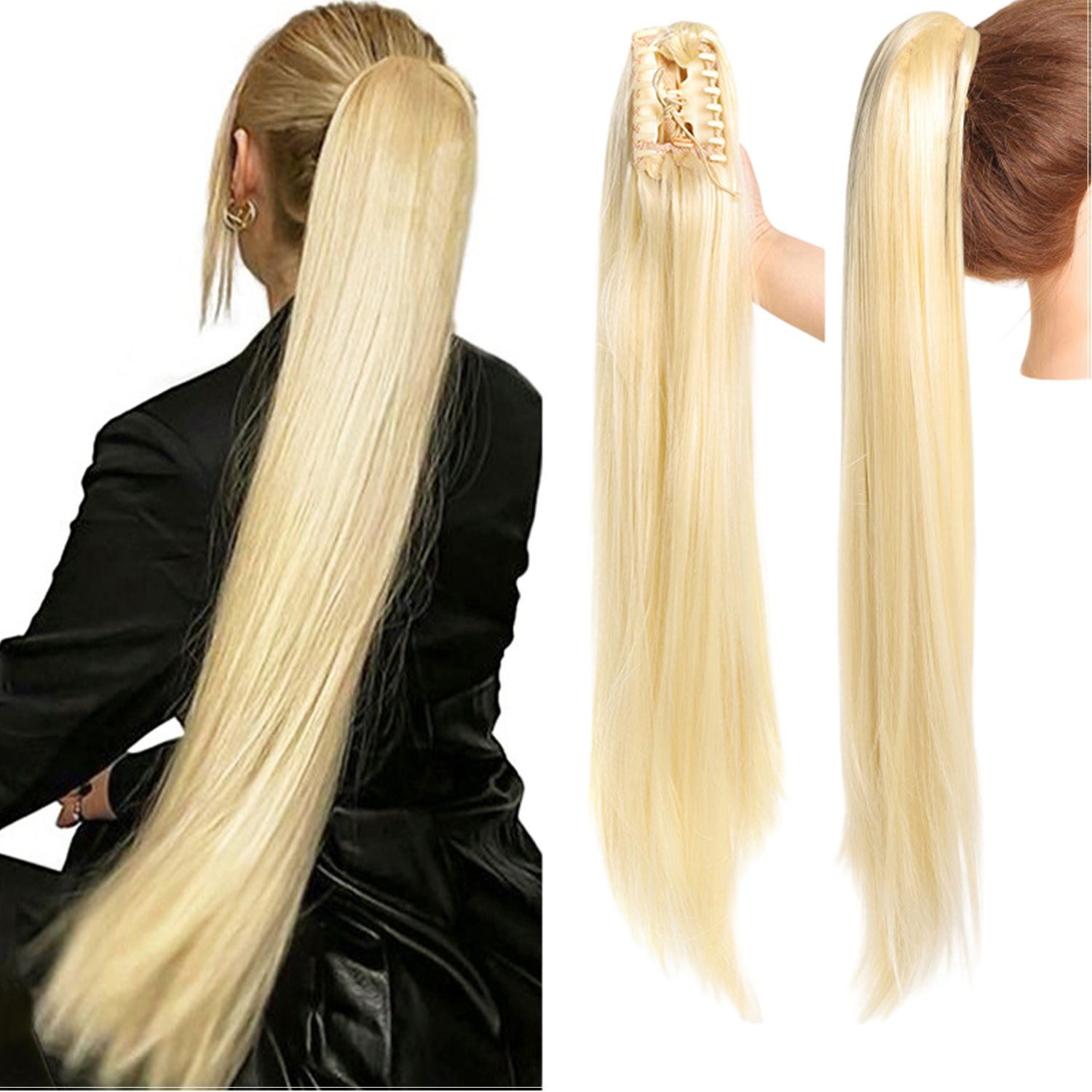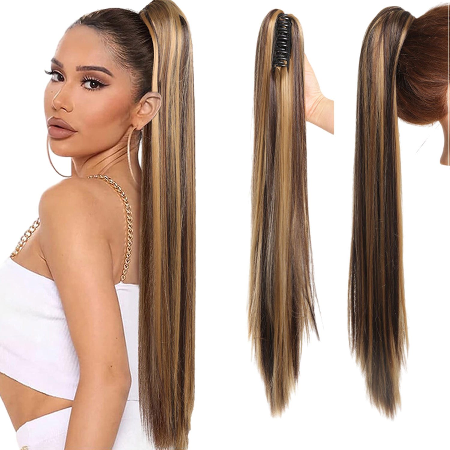 Ponytail Extensions Zopf Pferdeschwanz Haarteil Glatt Lang 70cm Claw Clip in Haarverlängerung Kunsthaare Synthetik Haarverlängerung Zopf Extension für Frauen