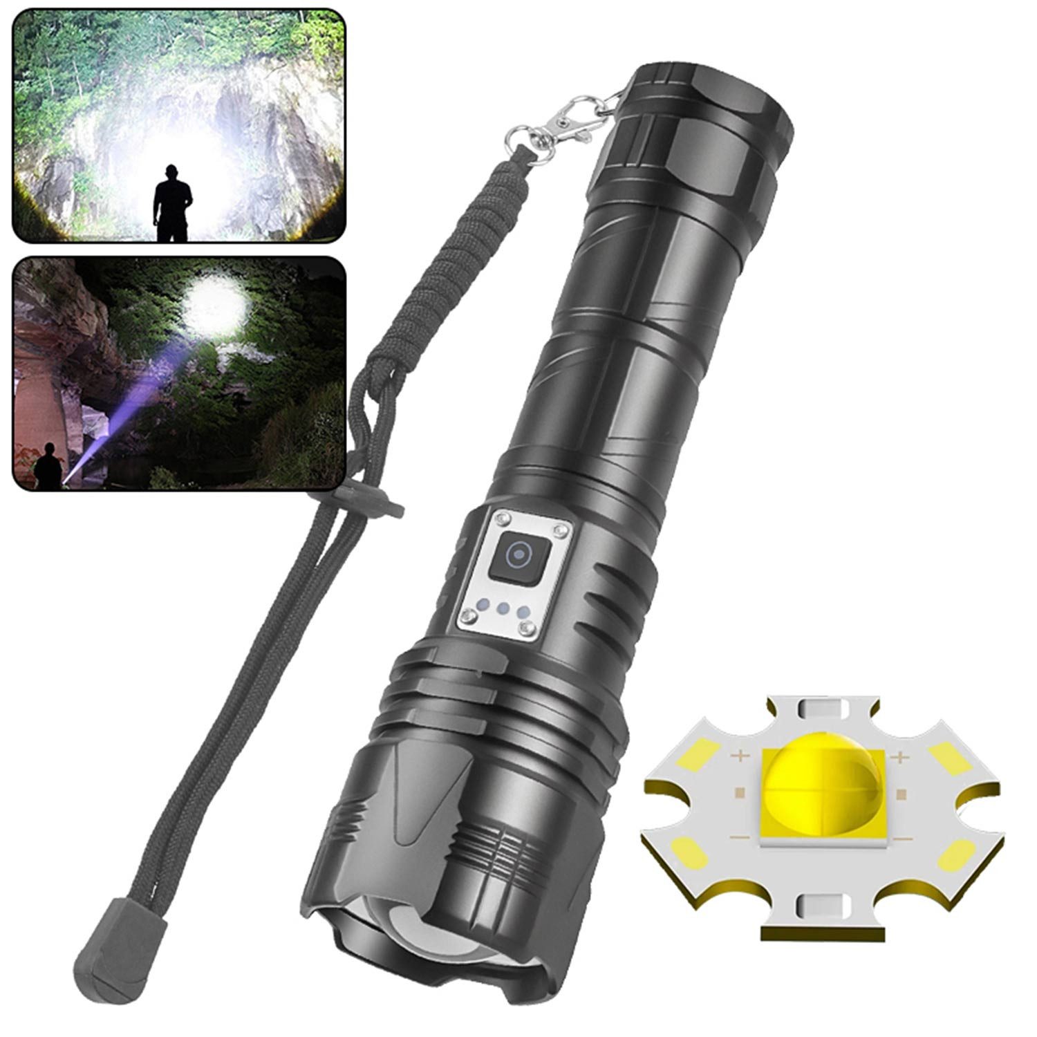 1500 Lumen LED Taschenlampe: Die led taschenlampe ist mit einem XHP70-Chip ausgestattet. Extrem helle taschenlampeder eine Lichtleistung von 1500 Lumen ermöglicht. Es kann problemlos einen Raum von 150 Quadratmetern beleuchten oder auf Objekte in 500 Metern Entfernung fokussieren.