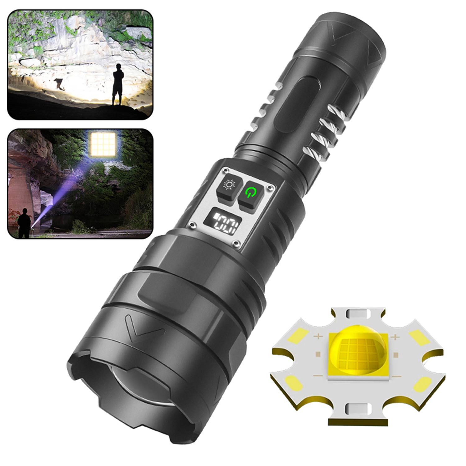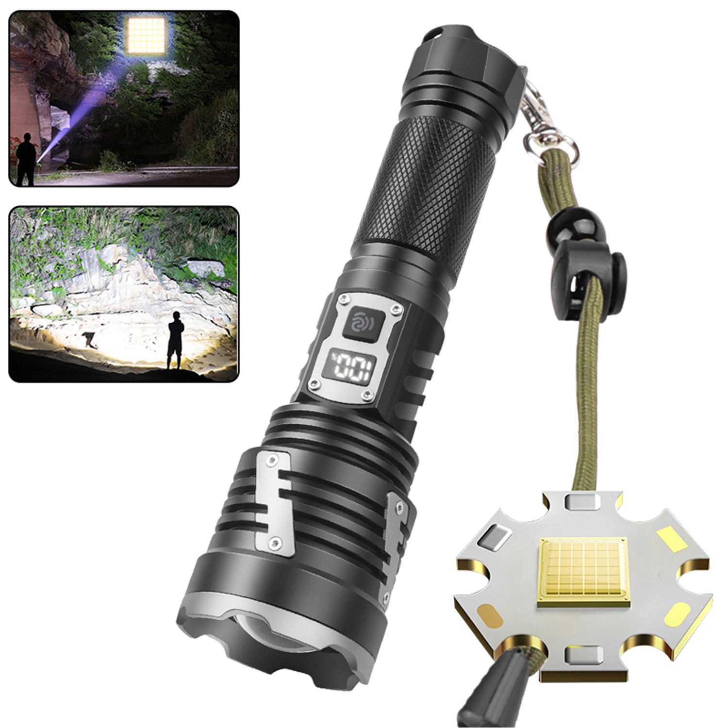 Funktionen: Mit Speicherfunktion, Rutschfester Griff, Hohe Leistung, XHP70 LED Chip, 5 Lichtmodi, langlebig, IPX4 wasserdicht, Typ-C Eingang, USB wiederaufladbar, einstellbarer Fokus, Leistungsanzeige