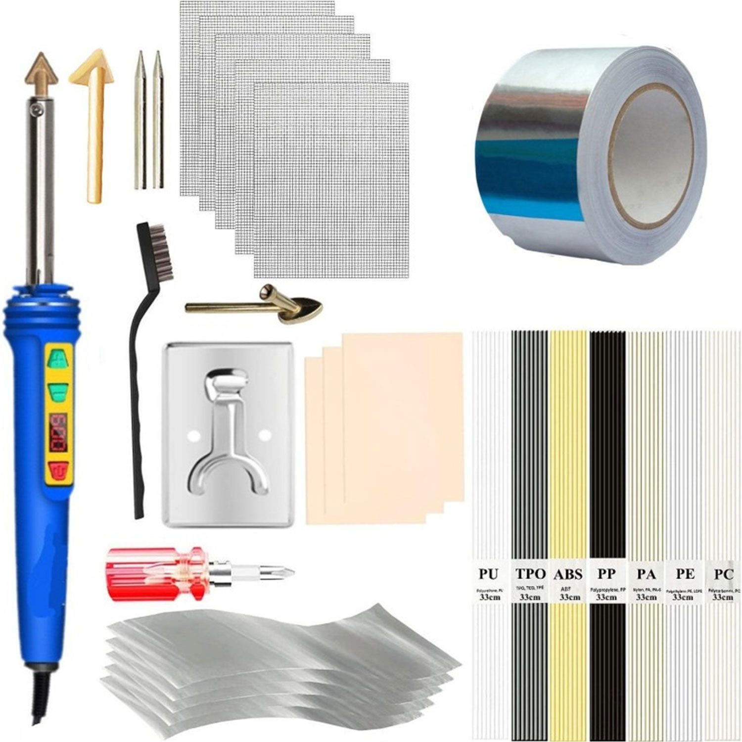 150W 2 in 1 Kunststoff Schweißen Lötkolben Reparatur Set, LCD Einstellbar Temperatur 200-600°C Lötkolben mit 56 Schweißstäbe mit 4 Lötkolbenspitze, Kunststoff Reparaturset für Autos Stoßstange
