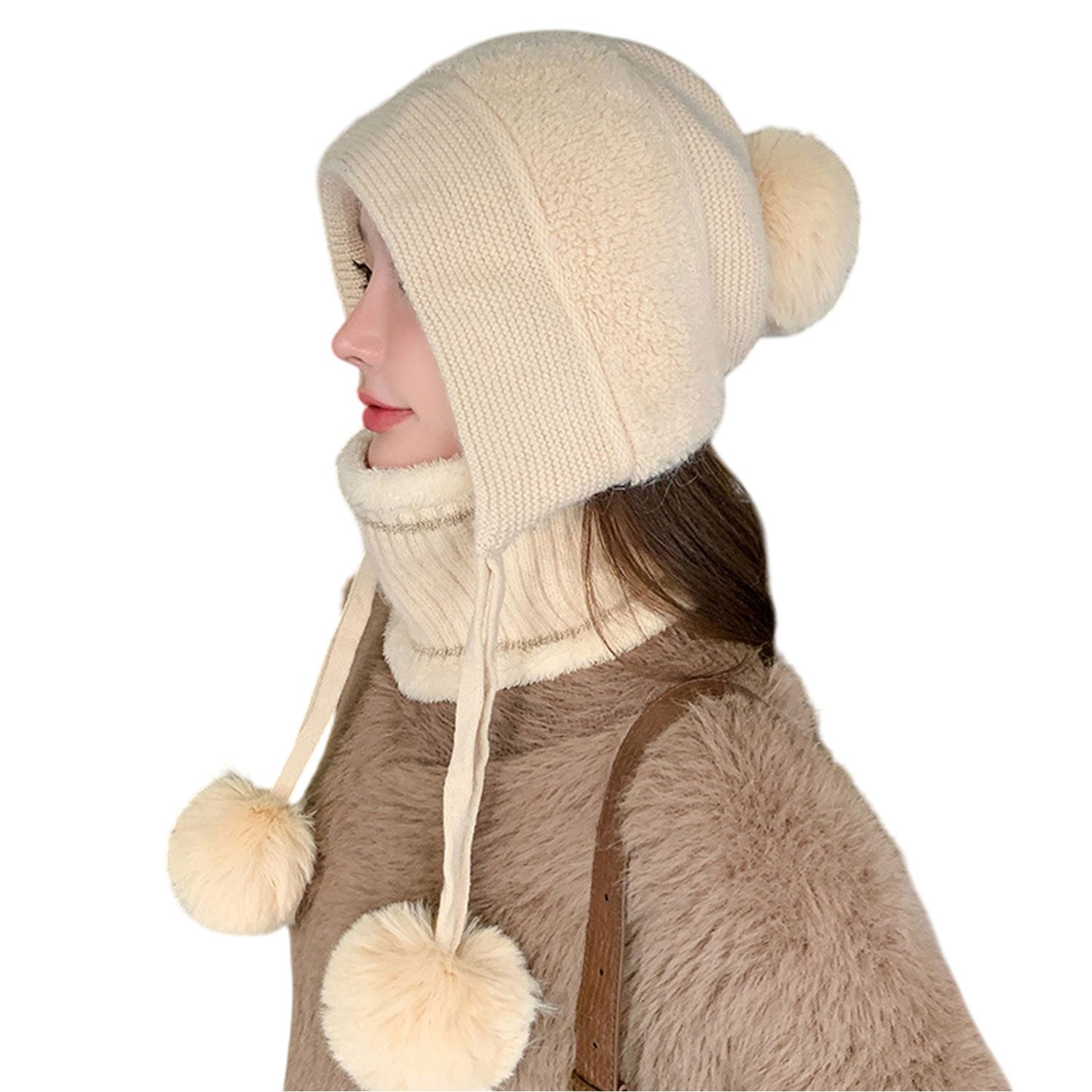 Stylische Kombination aus Wintermütze und passendem Schal, perfekt als warmes Accessoire für kalte Tage. Die *Strickmütze* mit Bommel verleiht jedem Outfit einen verspielten und modernen Look.