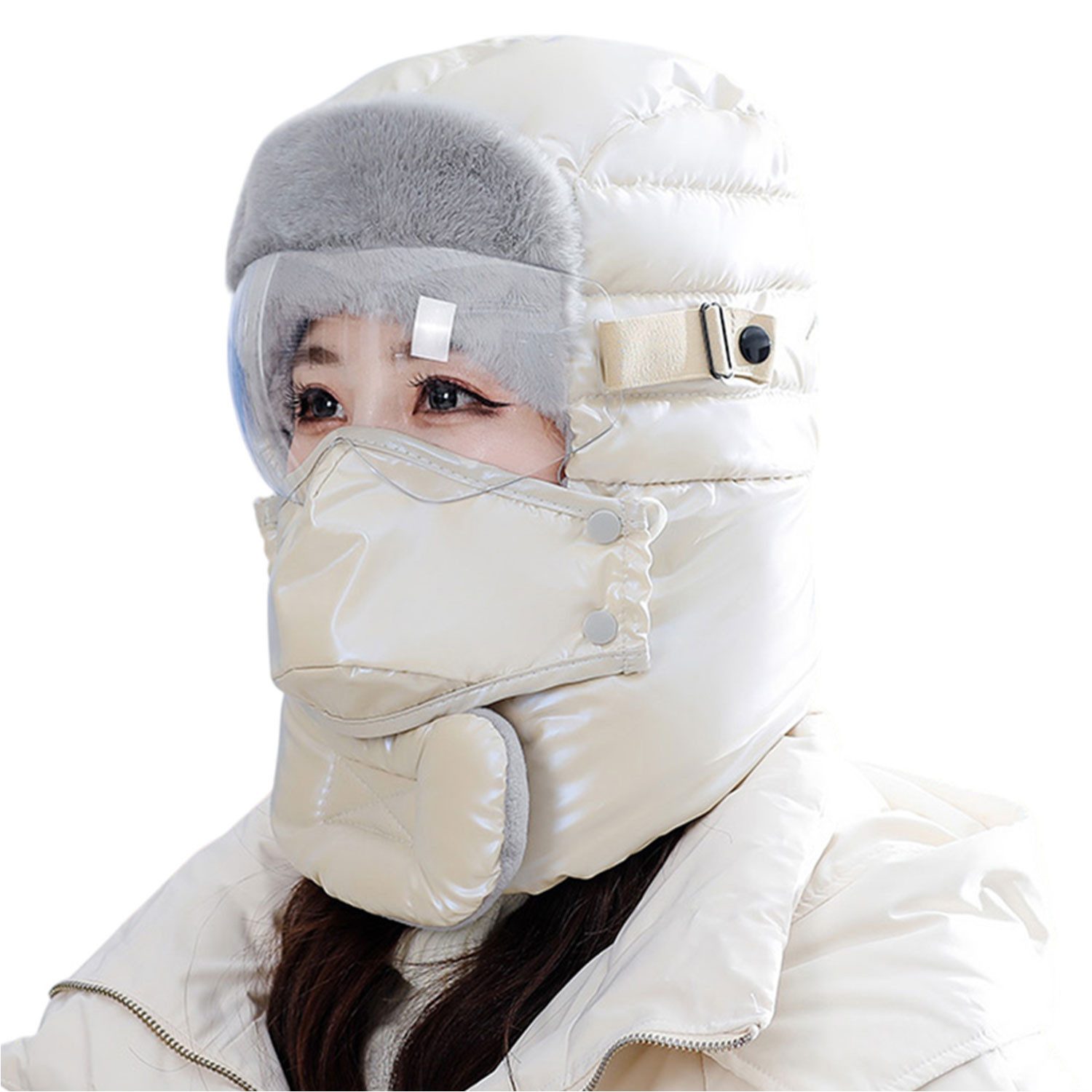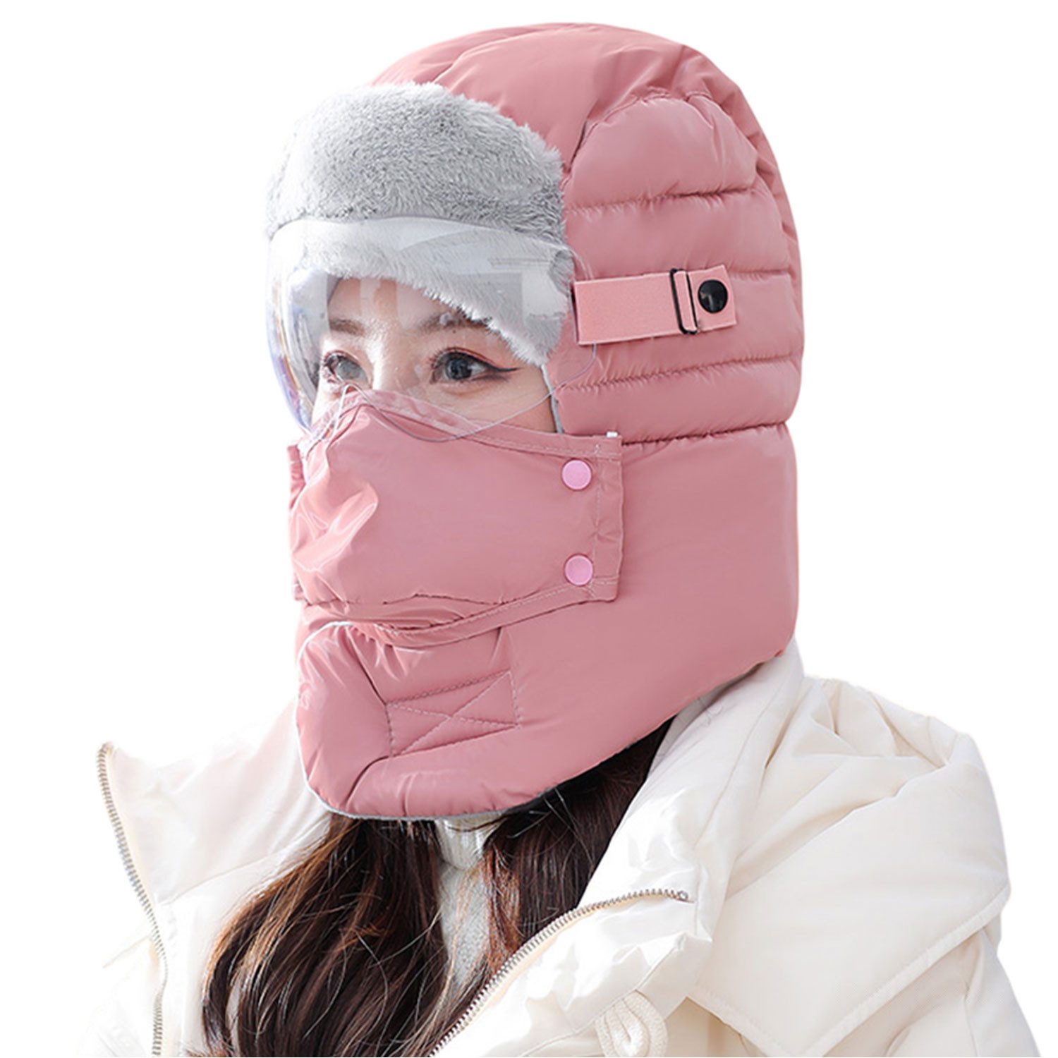 Winddicht Thermo Trappermütze Wasserabweisend Wintermütze Schlupfmütze Skimütze Fliegermütze mit Schutzbrille, Ohrenklappen und Masken