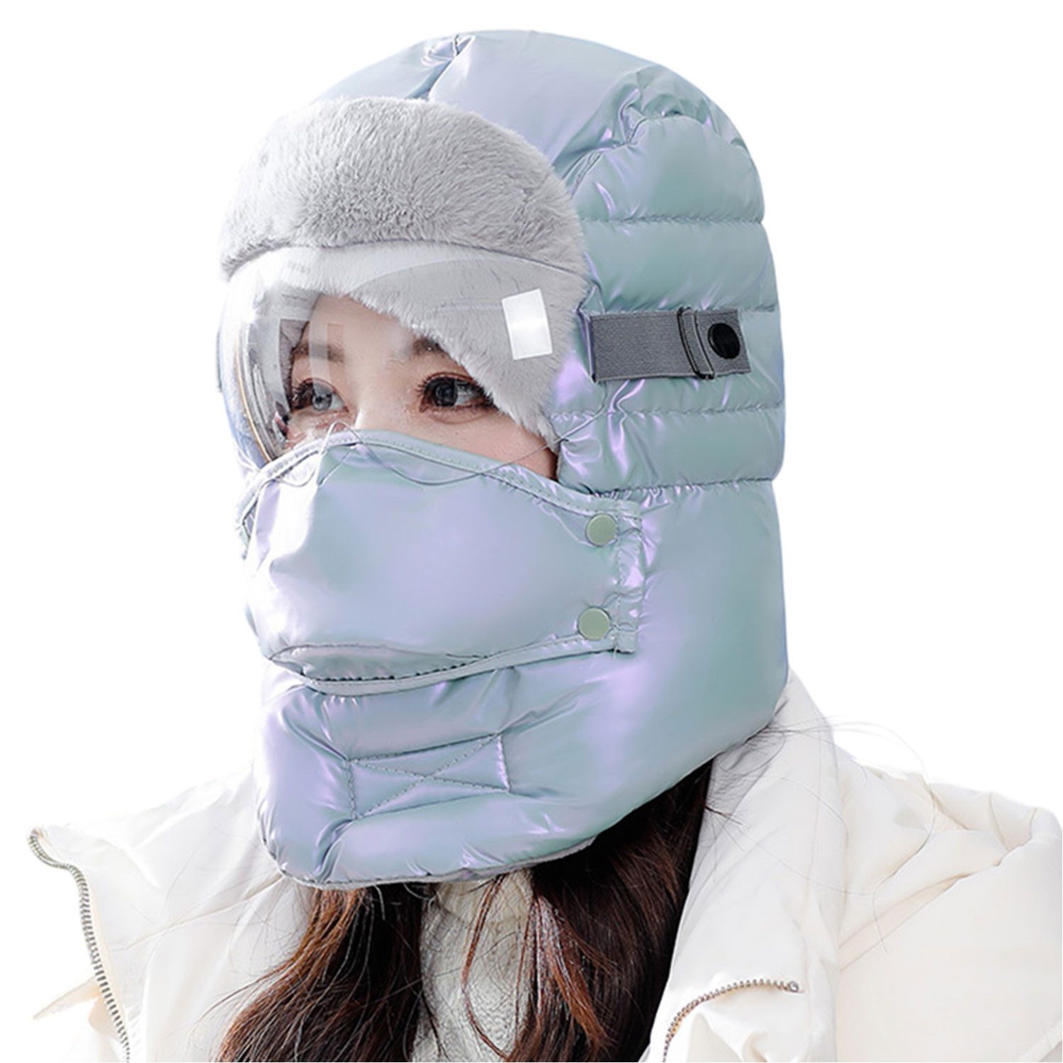 Die Plüschmütze wird mit einer abnehmbaren Schutzbrille geliefert, die angenehm zu tragen, wind-, schnee- und beschlagfrei ist, die Augen auch bei extremem Wetter effektiv schützen und eine klare Sicht bewahren kann, besonders geeignet für Outdoor-Sportarten wie Skifahren und Radfahren.