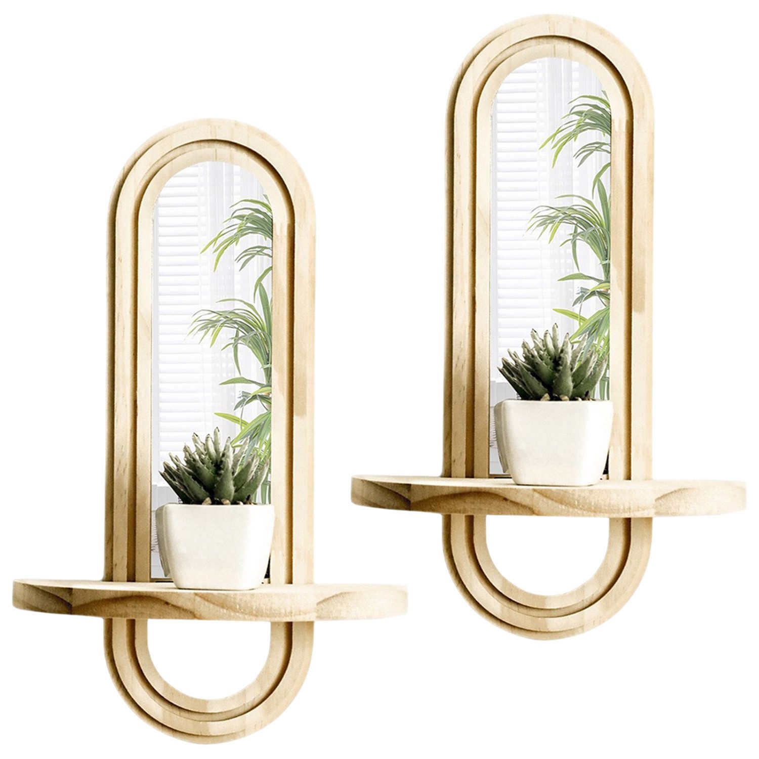Dieses stilvolle Wandregal mit Acrylspiegel kombiniert Funktion und Design. Die elegante Bogenform aus Holz macht es zu einem echten Blickfang in jedem Raum und sorgt für ein helles, freundliches Ambiente.
