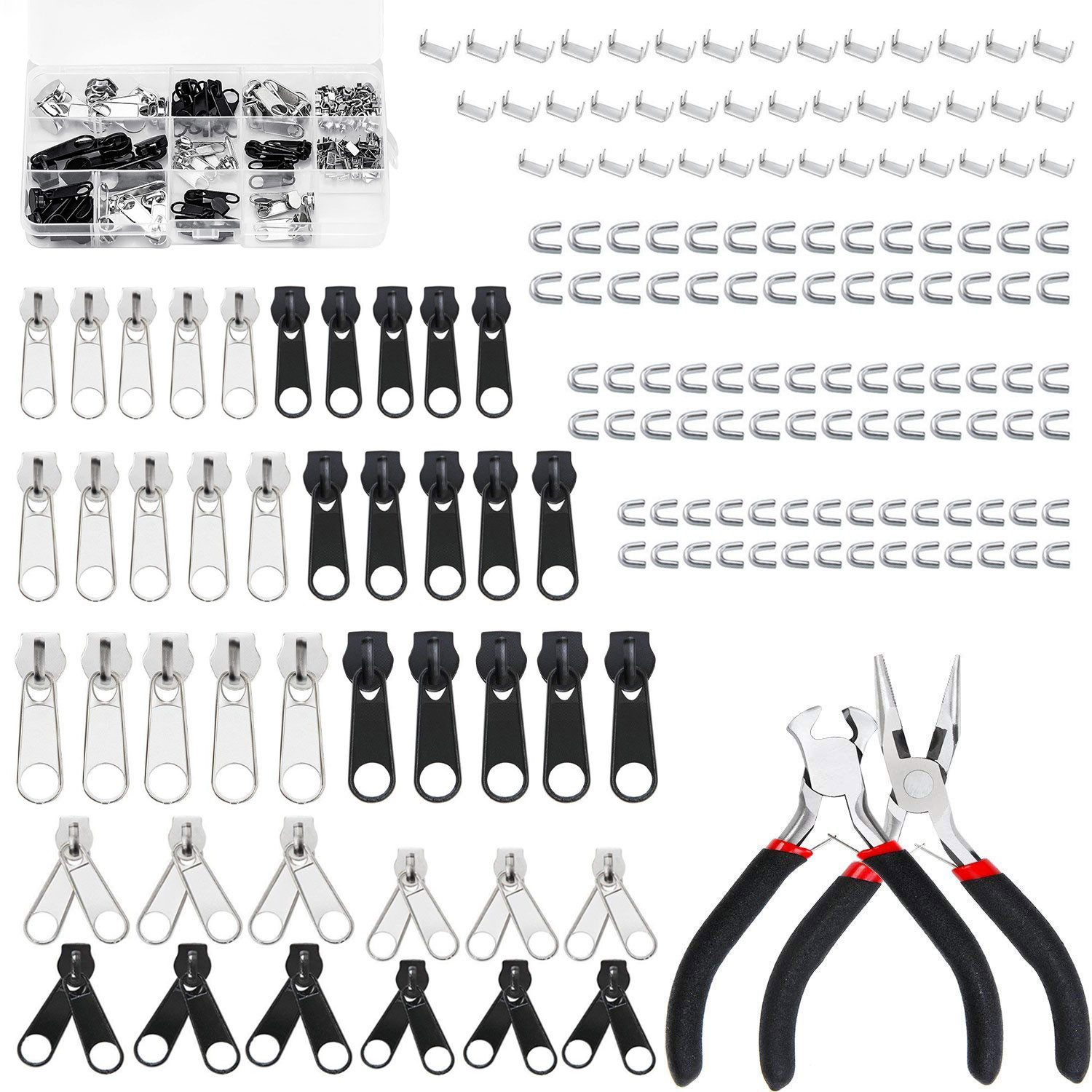 Ersatz-Reißverschluss-Reparaturset, 171-teilig, geeignet für die Reparatur von Kleidung, Geldbörsen und Taschen