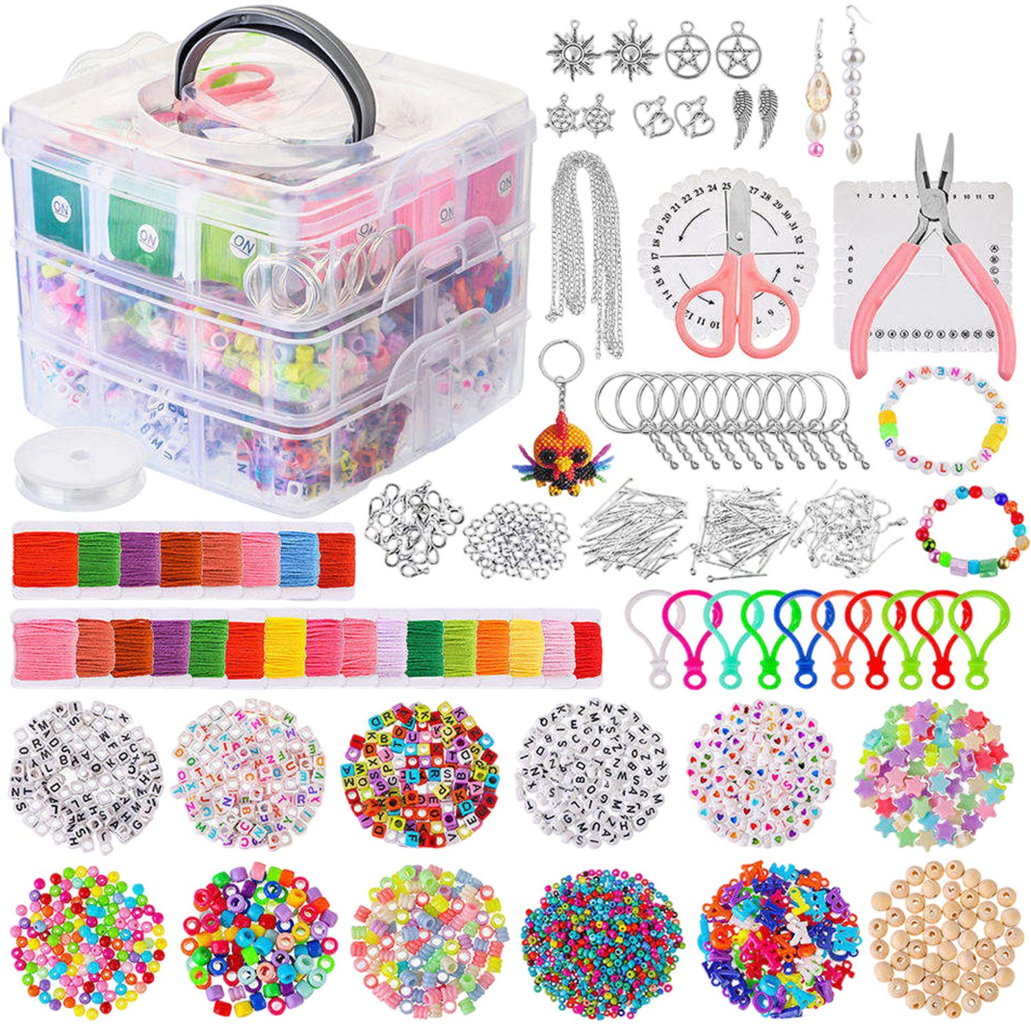 3-lagiges 4655-teiliges Perlen-Anhänger-Set mit Perlendraht für DIY-Armbänder, Halsketten, Ohrringe und Schmuckherstellungswerkzeuge