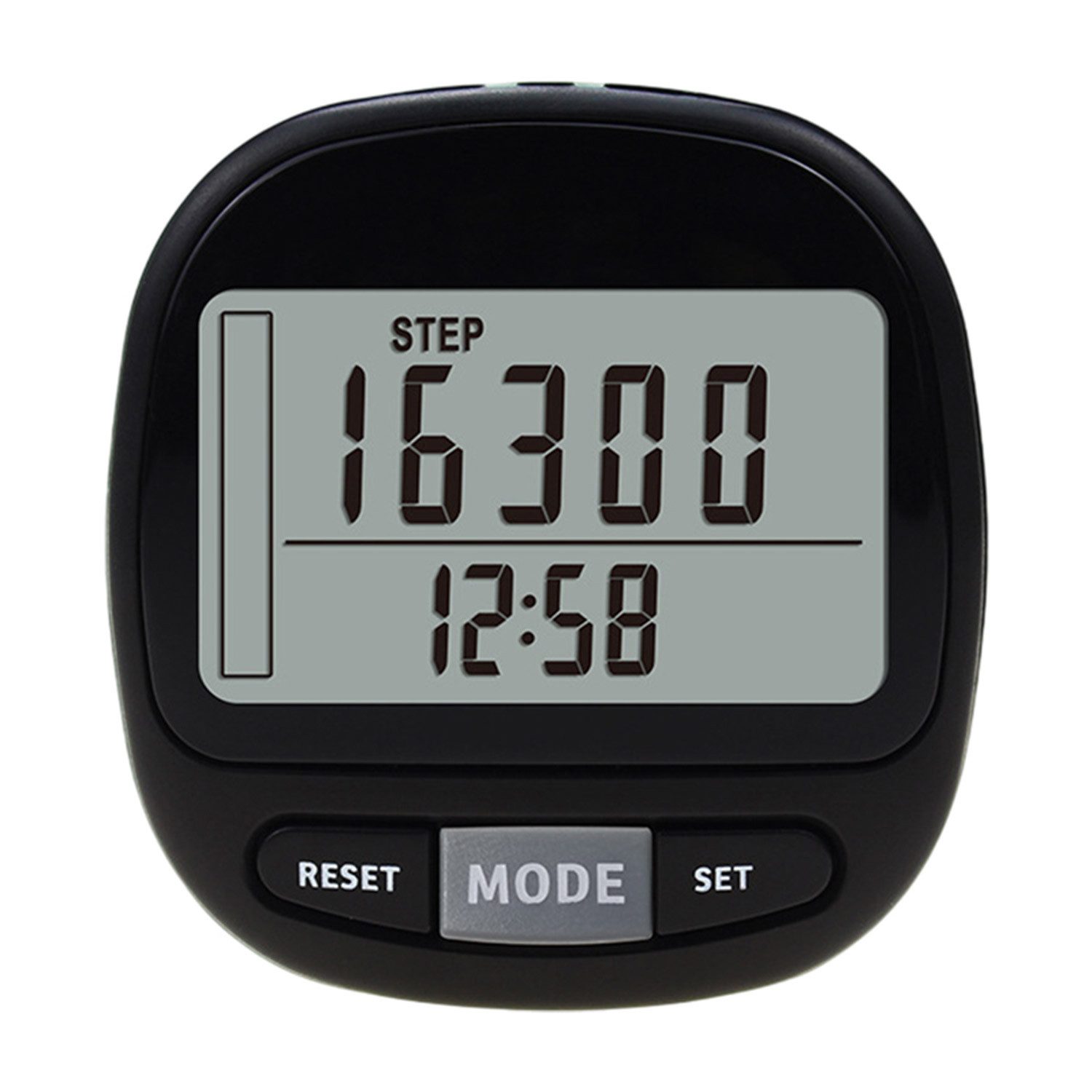 Das große LCD-Display zeigt deine Schritte immer klar und übersichtlich an. Mit dem praktischen Clip und einer Schlaufe kannst du ihn sicher an der Kleidung oder am Handgelenk tragen. Er ist super leicht und fällt kaum auf.